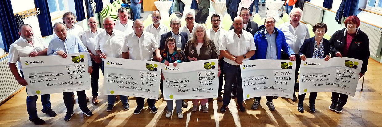 Réiden/Atert: Ganz gut besicht war di 16. Generalversammlung vum Réidener Wanterlaf viru kuurzem an der Aula zu Réiden. Agaangs huet de President Fernand Thill sengem Komitee, dem Atert- Lycée, denen ronn 130 Leit di benevol am Asaatz waren, souwi der Gemeng Réiden mat hiren technischen Service, fir hirt grousst Engagement Merci gesoot, esou dat den Wanterlaf 2023 op et neiss e groussen Erfolleg war. Duerno huet de Sekretär Claude Conrardy di iwert 25 Aktivitéiten vum Veräin, Revue passéiere gelooss, wou de Komitee och iwert d’Joer ganz engagéiert war. Aus dem ausféierlichem Keessebericht vum Fernand Thill gong ervier, det de Réidener Wanterlaf mat Ausgaben vun ëmmerhin 27.255 Euro an 14.380 Euro un Spenden nach op enger gudder Finanzbasis berout. Dobéi gouf bemierkt, dat de Réidener Wanterlaf säit senger Grënnung am Joer 2007 bis 2023 nit manner wi 208.516 Euro u Spenden fir gudd Wierker ausgin huet. Als ganz exakt hun di zwéin Keesservisoren Louis Bokkon an Romain Sassel di perfekt Buchführung bestätigt an Entlaschtung gewährt. Och di nei opgestalten Statuten, wou verschidden Ännerungen am Detail virgelies gi sin, sin vun der Versammlung ouni Kommentar gut geheescht gin. Fir dat laafend Joer ass och e Budget vun 40. 000 Euro virgesin. Bei der Neiwiel vum Komitee sin di 4 nei Kandidaten Jérôme Feltz, Romain Hoffmann, Mario Martins an David Valent per Akklamatioun op hirem neie Posten bestätigt gin. A senger Laudatio huet de Buergermeeschter Henri Gerekens dat grousst Engament vum Komitee mat hirem neien President Fernand Thill begréisst, huet di vill Aktivitéiten iwert d’Joer ervierguewen wou och den Atert Lycée all Joer matmëcht an och de Komitee vum Wanterlaf weiderhin vun der Gemengeverwaltung gären ënnerstëtzt gett. Ofschléissend huet de Buergermeeschter di vill Spenden an all denen Joeren fir gut Wierker ënnerstrach. Zum Schluss vun der Versammlung goufen folgend Schecken mat engem Total vun 20.016 Euro verdeelt: „Trisomie 21“: 10.016 Euro, vertrueden duerch de Victor Wolff an d‘Jeanne Zuidberg. „Île aux clowns“: 2.500 Euro, vertrueden duerch de Claude Hemmer. „Herzkrank Kanner“: 2.500 Euro: vertrueden duerch d’Monique Pletschet an Carole Rommes. „ASA/Assistenzhonn/Muppeschoul“ : 2.500 Euro, vertrueden duerch de Luc Schwartz. „Chiens guide aveugles“ hun och 2.500 Euro iwerwisse kritt. (CR) (Foto: Charles Reiser)