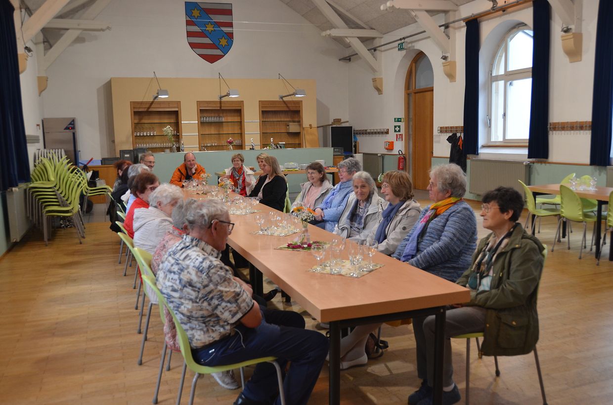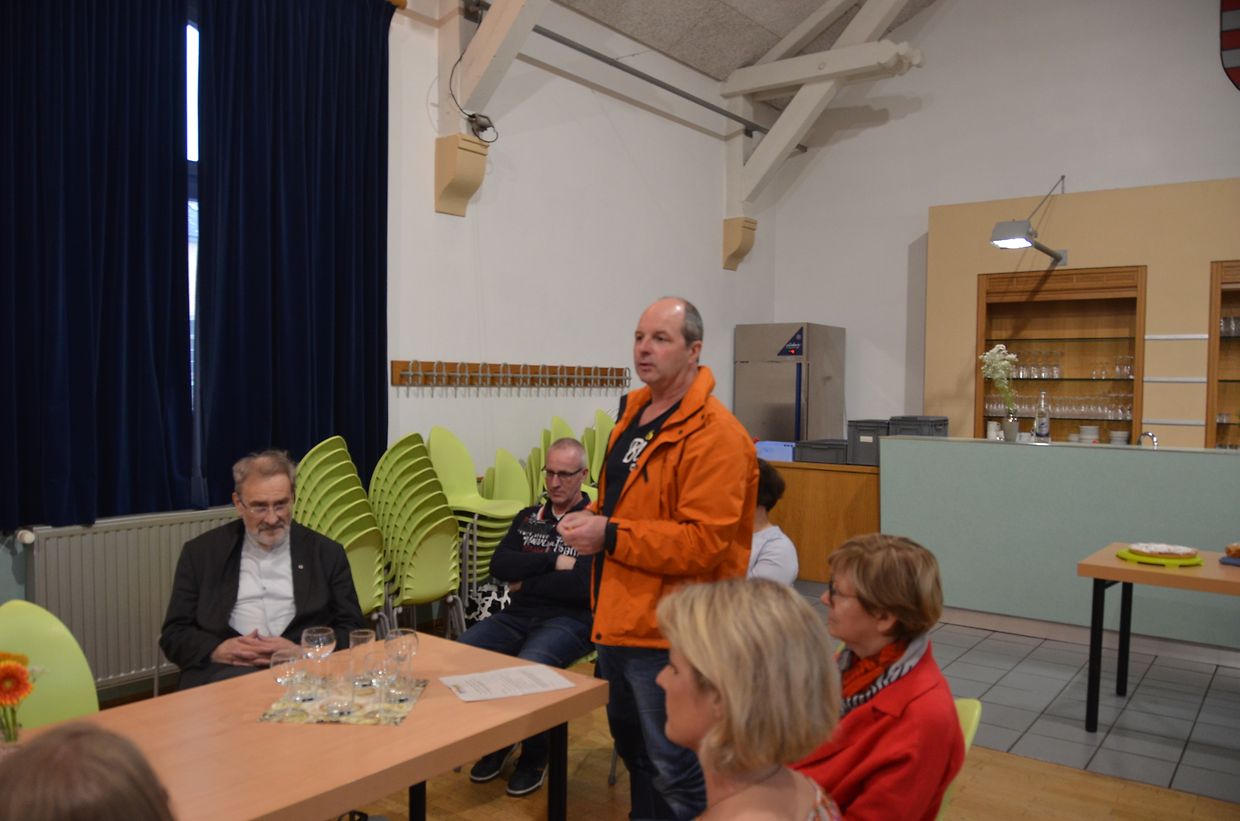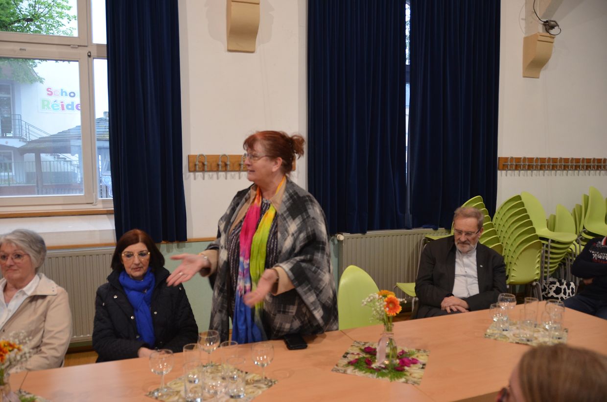D’Presidentin Martine Lallemand-Wio huet d’Invitéë begréisst; d’Vertrieder vun der Gemeng, den Här Buergermeeschter Henri Gerekens, souwéi déi éischt Cheffin Madamm Danielle Arend. Madamm Joke de Kroon, Vizepresidentin vun der ACFL Lëtzebuerg. Madamm Marie-Claire Rasqué Presidentin vun de Fraen a Mamme Par Atertdall Sainte-Claire, a Regionalvertriederin vun der ACFL, d’Éierepresidentin Madamm Rosa Pletschette-Wolter, vum Nidderpallener Gesank Madamm an den Här Claudine a Freddy Sangers-Majerus, esou wéi den Här Deche Jean-Jacques Flammang S.C.J.