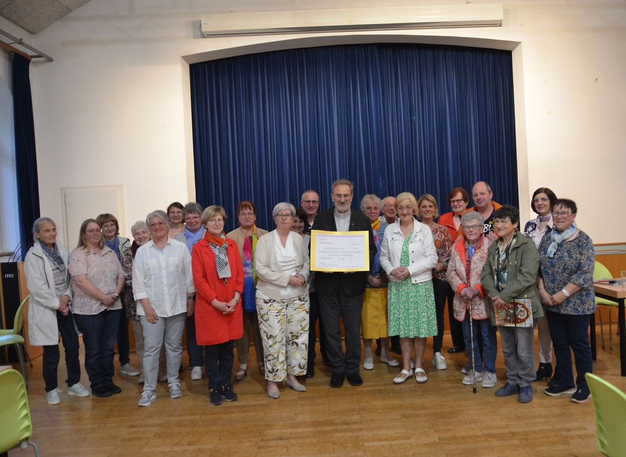 Och wann dat lëscht Joer keng grouss Einnamen do waren, ass dunn ee Schéck vun 2.500€ iwwerreecht ginn un “Pëtze baue fir Madagaskar” mat Erklärunge vun hirer Aarbecht op der Plaz. Dëse Projet ass jo och Solidaritéitsaktioun vun der ACFL vun 2023-2025. E läit der ACFL Réiden aus der Par Atertdall besonnesch um Häerz, well d’Häerz-Jesu Patere vu Clairefontaine Initiator vum Projet sinn. De Pater Jean-Jacques Flammang huet sech ganz häerzlechst bedankt, a sot, mat deene Sue kéint ee vill Guddes maachen.