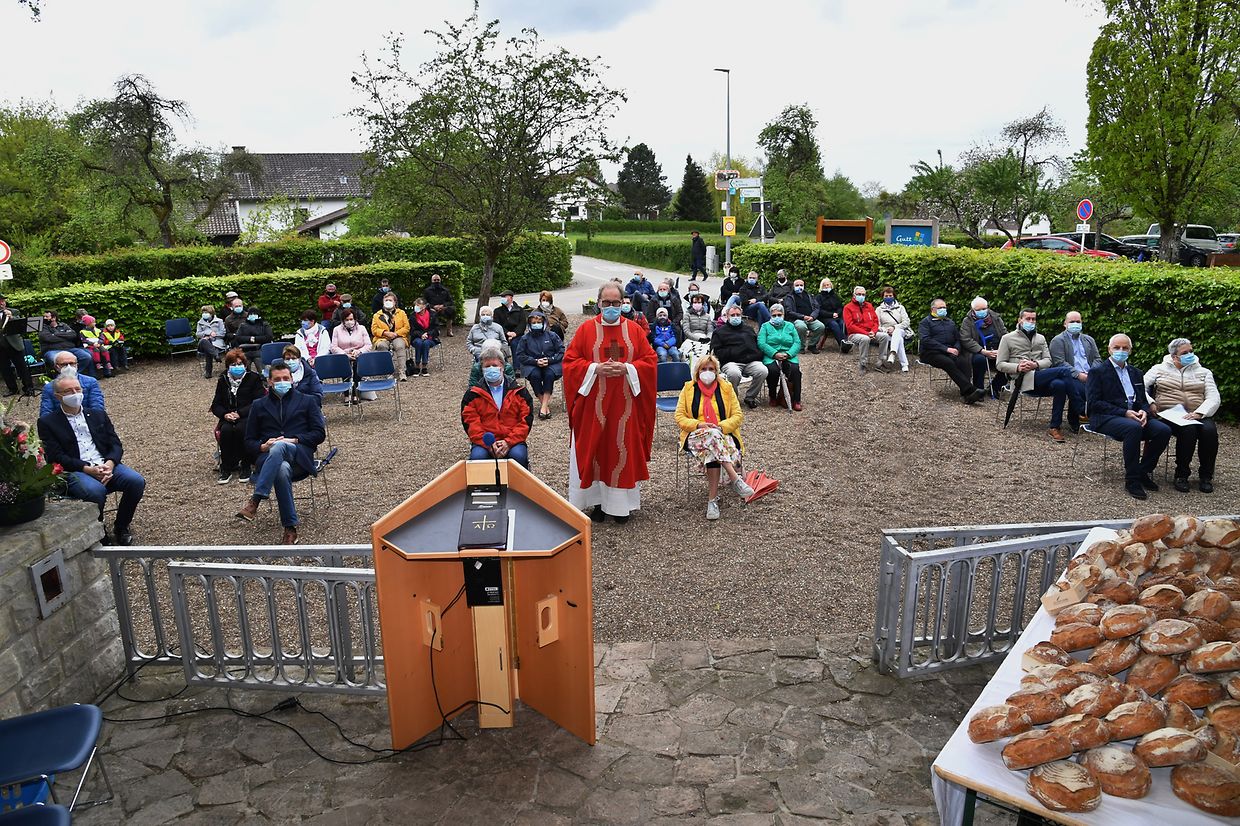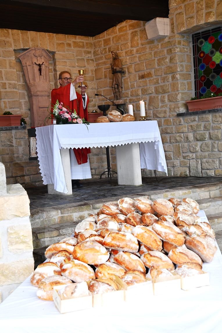 Reimberg: Bereits zum 64. Mal fand am Pfingstmontag auf Einladung des lokalen Syndicat d’initiative und der Gemeinde Préizerdaul in der Waldkapelle die Rochusfeier zu Ehren des Schutzpatrones der Bäcker, Müller und Konditoren statt. Bedingt durch die sanitären Vorschriften, fand, der von Pater Jean- Jacques Flammang zelebrierte Gottesdienst, in dessen Verlauf das frischgebackene Brot gesegnet wurde, allerdings in einem kleineren Rahmen statt, als die Jahre zuvor. Trotz der unangenehmen Wetterverhältnisse hatten sich neben den Mitbewohnern aus der Pfarrei und Umgebung auch die Vertreter der Gemeinde, sowie der „ Confédération Liewensmëttelhandwierk- section des Patrons Boulangers- Pâtissiers“ mit Carlo Bock als Mitglied und dem Delegierten Jean- Marie Neuberg eingefunden. Die musikalische Umrahmung hatten die „Réidener Juegdbléiser“ unter der Leitung von Marc Pletgen übernommen. In seiner Festrede betonte Pater Jean- Jacques Flammang, dass das Brot nicht nur ein Grundnahrungsmittel ist, sondern auch ein Zeichen des Teilens und der Gemeinschaft mit Jesus Christus und allen Menschen, wie es Papst Franziskus in seiner Enzyklika “Fratelli Tutti“ immer wieder betont. Im Anschluss an die Festmesse erinnerte SI-Präsidentin Josée Steichen- Risch, stammend aus einer Bäckerfamilie, dass die Bäcker, Müller und Konditoren zum ersten Mal vor 64 Jahren zur Waldkapelle pilgerten, die durch die Einwohner von Reimberg in Erfüllung eines Gelübdes, erbaut wurde, nachdem viele Einwohner, ihr Leben durch eine Cholera-Epidemie 1854 ,verloren hatten . In der Hoffnung auf eine bessere Zukunft, sei man bestrebt im kommenden Jahr das 65. Jubiläum gebührend zu feiern. In ihren jeweiligen Schlussreden zollten sowohl Carlo Bock seitens der Bäckergenossenschaft sowie auch Bürgermeister Marc Gergen- stammend aus einer Bäckerfamilie- allen Bäckern - Konditoren und Müllern Respekt und Anerkennung für ihre steten Bemühungen, das tägliche Brot mit viel Mühe und Liebe auch herzustellen. Dem Organisator mit allen Beteiligten, Pater Jean- Jacques Flammang galt ihr Dank für die tadellose Organisation dieser Feier, die im kommenden Jubiläumsjahr erneut unter besseren Bedingungen stattfinden soll. (CR)(FOTO: CHARLES REISER