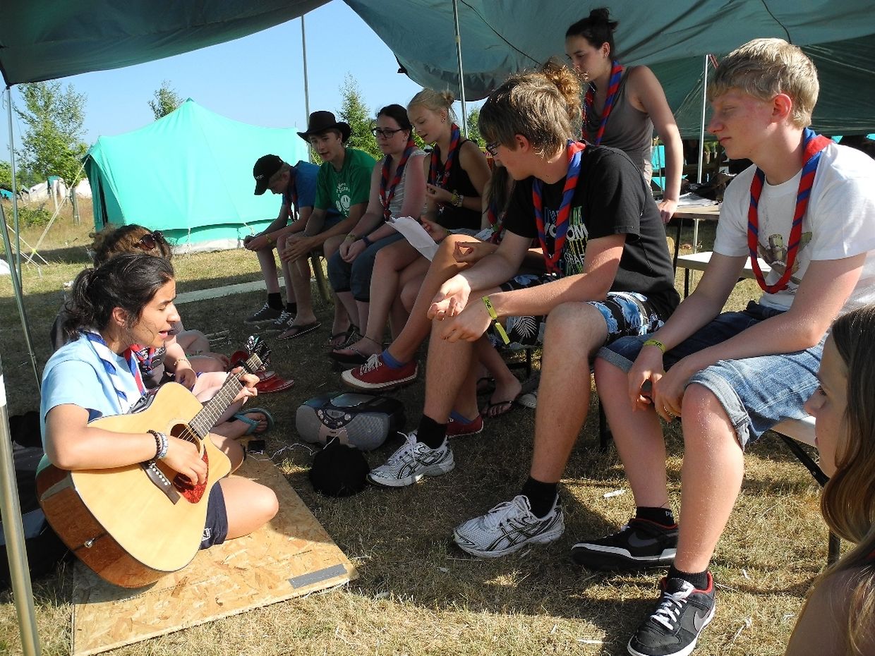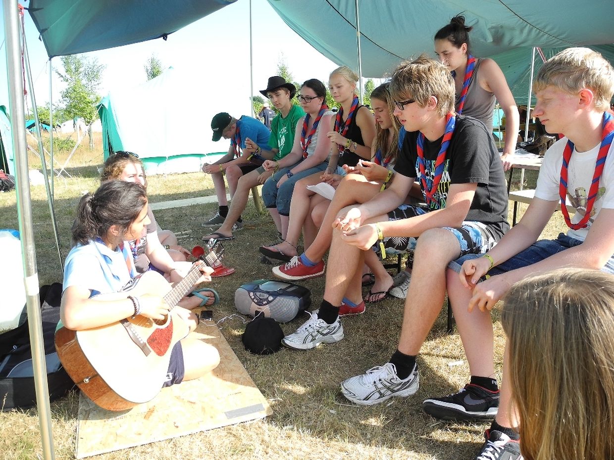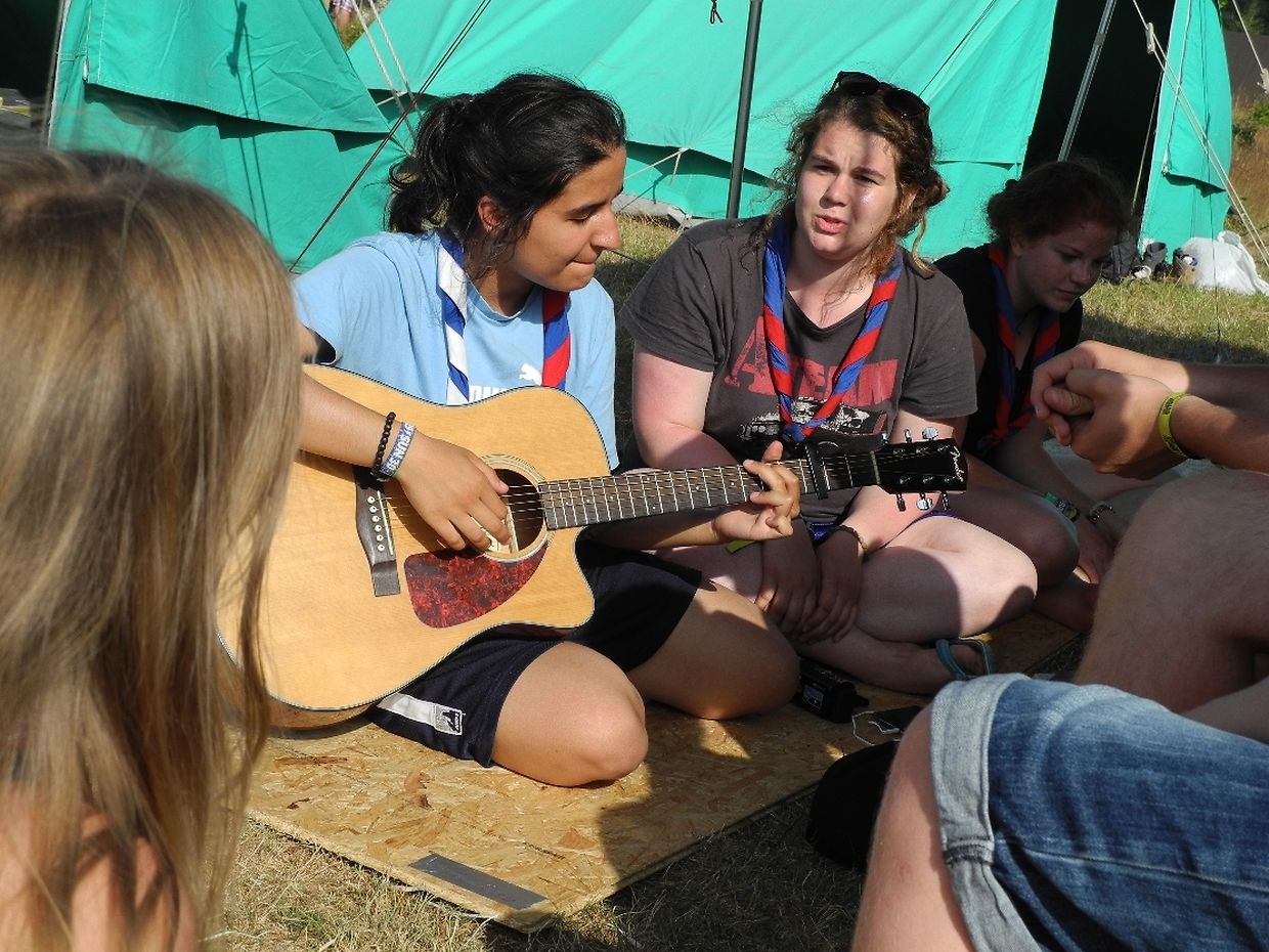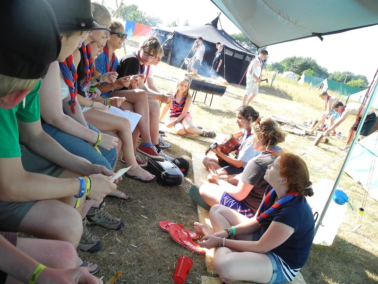 (L.E.) - Jil und Marie geben den Ton an. Nicht nur als CaraPio-Leiterinnen der Pfadfinder aus Remich, sondern auch im wortwörtlichen Sinne, beim Gesang. Wir befinden uns unweit von Wareham bei Poole, im Süd-Westen Englands. Die Sonne scheint nicht nur, sie drückt auf den Lagerplatz auf dem über 400 junge Luxemburger Guiden und Scouts ihre Zelte aufgeschlagen haben. Die Temperaturen liegen bei über 30 Grad Celsius. Die Jugendliche aus der Moselstadt stören sich nicht daran sondern vertreiben sich die Zeit mit Musik und Gesang. Drei CaraPio hacken Holz und bereiten ein Feuer vor.