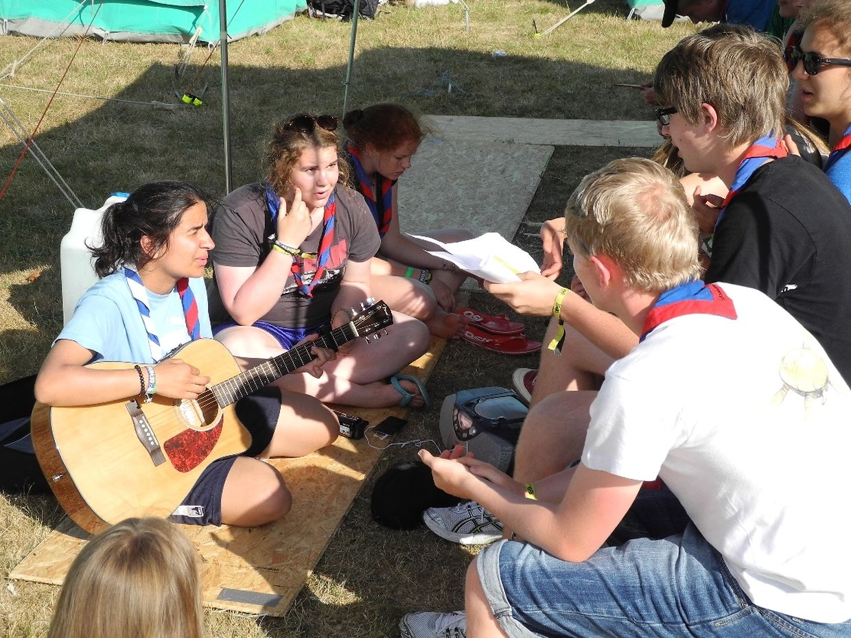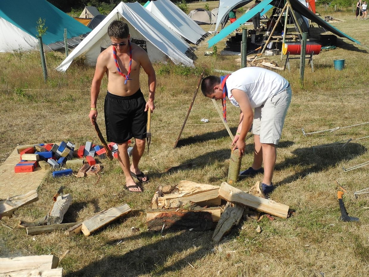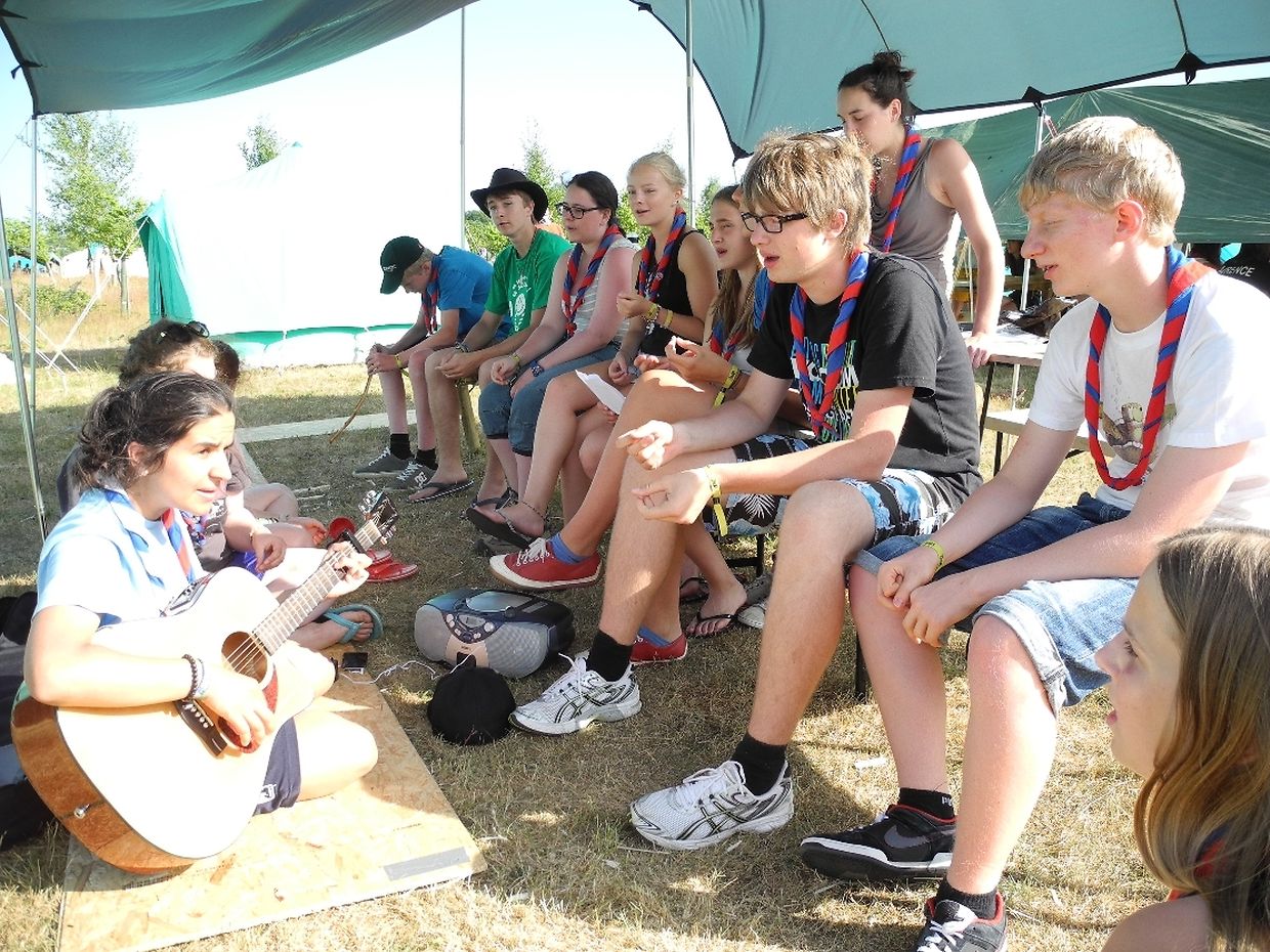 (L.E.) - Jil und Marie geben den Ton an. Nicht nur als CaraPio-Leiterinnen der Pfadfinder aus Remich, sondern auch im wortwörtlichen Sinne, beim Gesang. Wir befinden uns unweit von Wareham bei Poole, im Süd-Westen Englands. Die Sonne scheint nicht nur, sie drückt auf den Lagerplatz auf dem über 400 junge Luxemburger Guiden und Scouts ihre Zelte aufgeschlagen haben. Die Temperaturen liegen bei über 30 Grad Celsius. Die Jugendliche aus der Moselstadt stören sich nicht daran sondern vertreiben sich die Zeit mit Musik und Gesang. Drei CaraPio hacken Holz und bereiten ein Feuer vor.