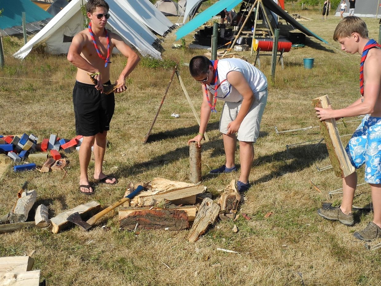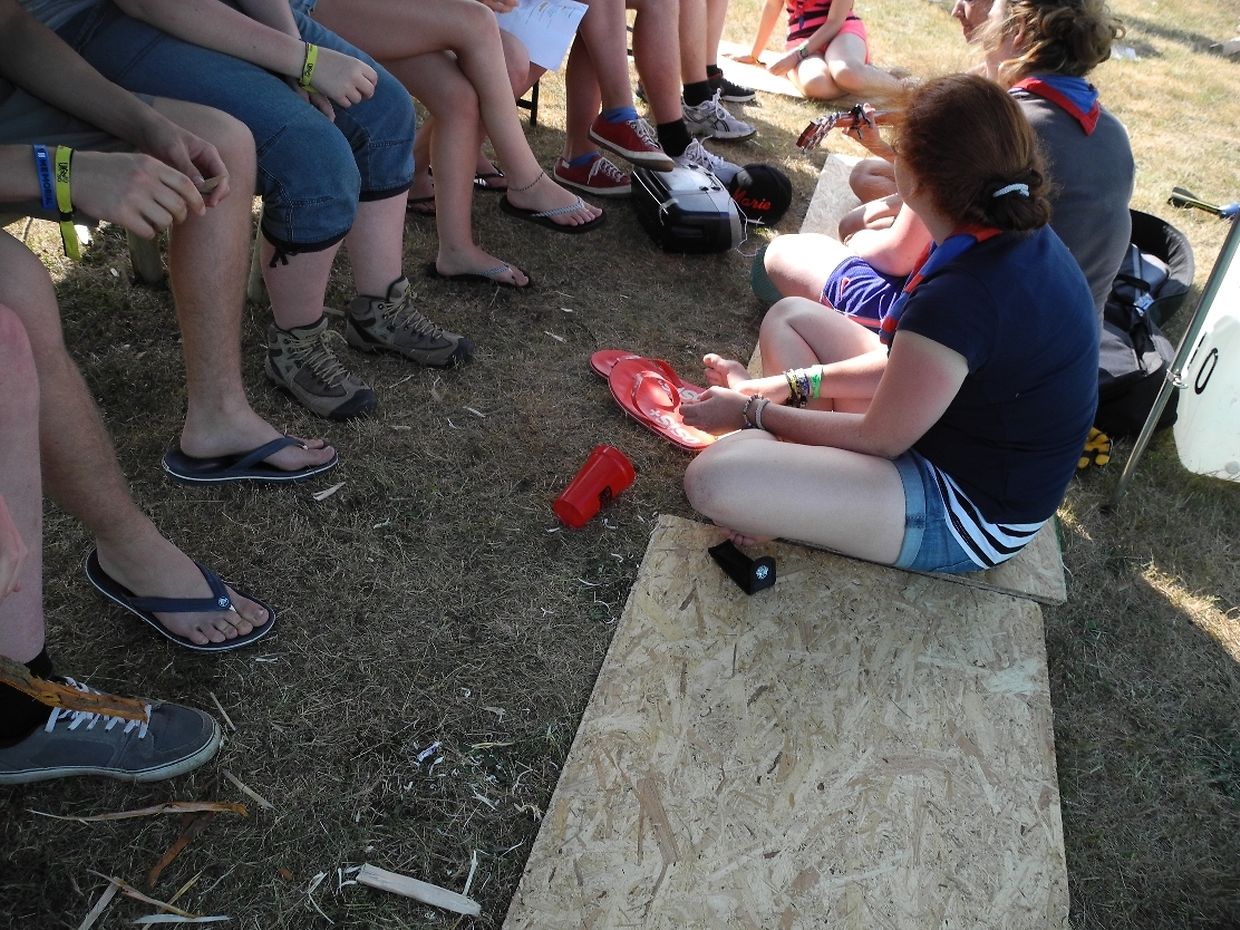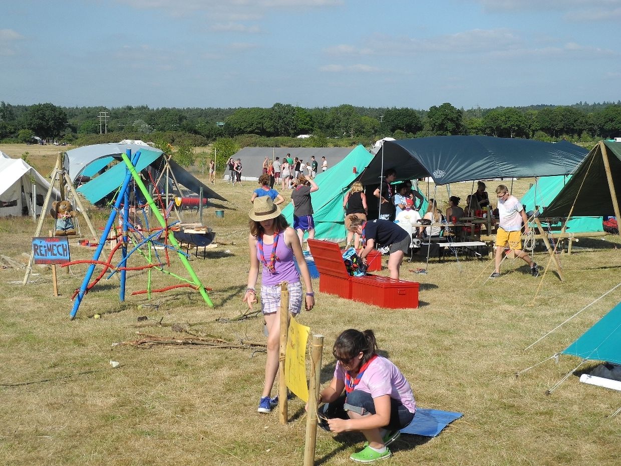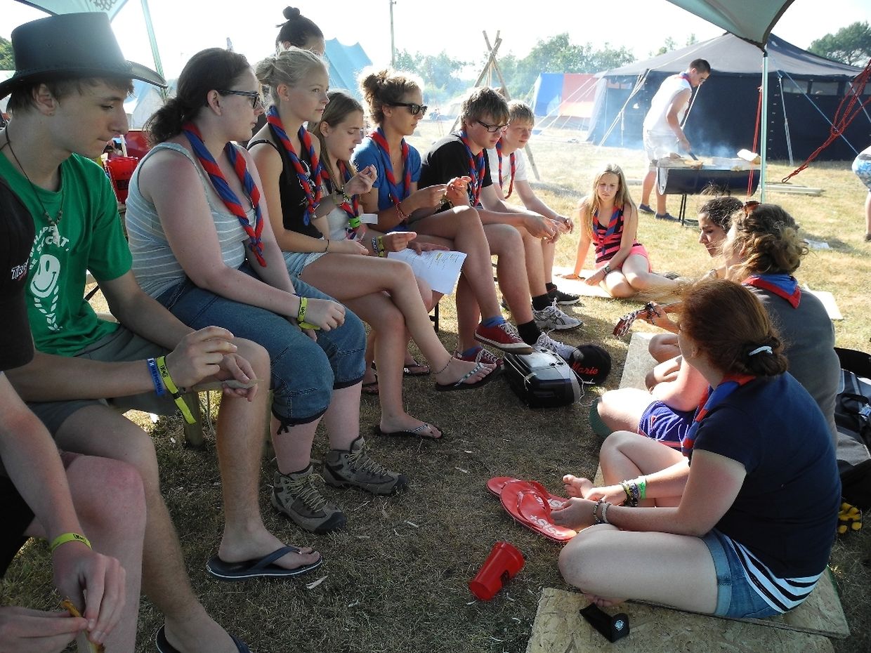 (L.E.) - Jil und Marie geben den Ton an. Nicht nur als CaraPio-Leiterinnen der Pfadfinder aus Remich, sondern auch im wortwörtlichen Sinne, beim Gesang. Wir befinden uns unweit von Wareham bei Poole, im Süd-Westen Englands. Die Sonne scheint nicht nur, sie drückt auf den Lagerplatz auf dem über 400 junge Luxemburger Guiden und Scouts ihre Zelte aufgeschlagen haben. Die Temperaturen liegen bei über 30 Grad Celsius. Die Jugendliche aus der Moselstadt stören sich nicht daran sondern vertreiben sich die Zeit mit Musik und Gesang. Drei CaraPio hacken Holz und bereiten ein Feuer vor.