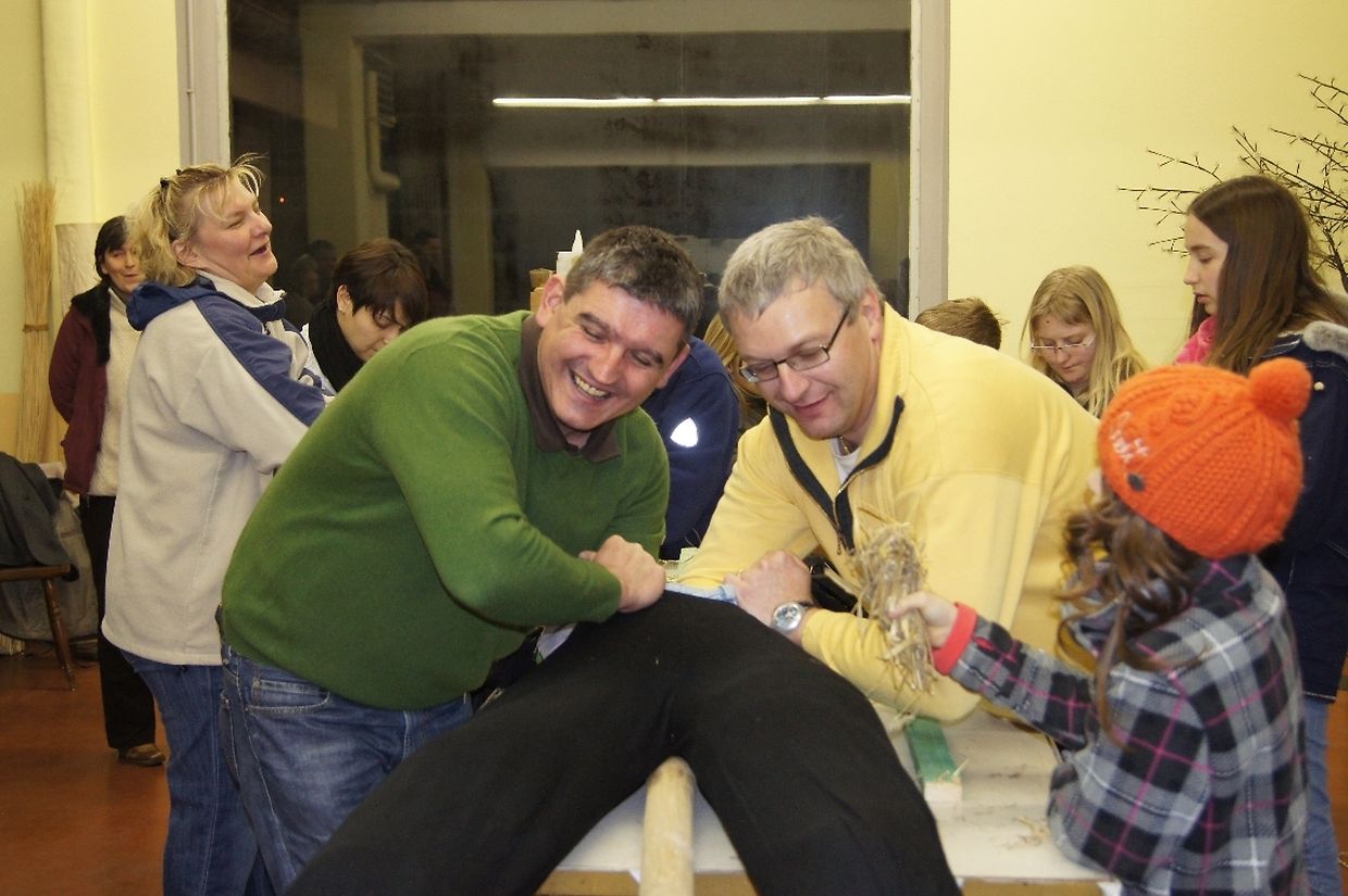 E Méinden den Owend haaten sech wéi all Joeres rem puer Frënn zesummen gedo fir enger aaler Traditioun Dengscht zeleeschten. D'Stéihfrächen as gebaut. Fir d'eischt gouf d'Material zesummen gesammelt. Aus holzen Laaten as fir d'eischt d'Grondgerüst gebaut gin, duerno as mat enger Box an engem Hiem der Popp hier Haut gebastelt gin fir duerno mat Stréih zefëllen. Fir symbolesch fest zehaalen dat d'Popp eng Fra as kritt sie weiblecht Gezeih ungedoen. Zum Schluss kritt Stréihfrächen nach eng eidel Fläsch an een eidelen Porte-monnaie ugehangen als Symbole dat d'Fuesend riwwer as an sie keng Suen mei huet.