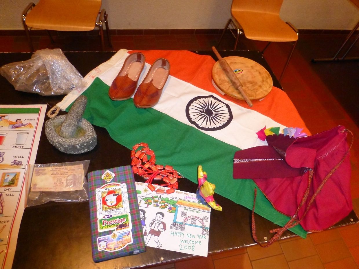 Wie Frau Holfeltz, eine Mitarbeiterin der „Maison Relais“ berichtete, bestand die erste Aktivität darin, ein Quiz über Indien, anhand von den aus Büchern der Schulbibliothek gefundenen Informationen zu lösen und sich mit den geographischen und topographischen Aspekten Indiens vertraut zu machen. Mit Hilfe von Overheadprojizierungen konnten die Kinder selbst eine große Landkarte aufzeichnen. Nach den ersten Recherchen über das Partnerland, fanden Informations- und Spielnachmittage in Zusammenarbeit mit der Organisation „Action Solidarité Tiers Monde“ statt: ein direkter Vergleich zwischen Luxemburg und Indien wurde aufgestellt, geschaut wie oft Luxemburg in Indien passe, Bilder thematisiert, die einzelnen Stufen der Entstehung einer Jeans und deren Reise bis in die luxemburgischen Geschäfte erforscht, sich mit kulturellen und schulischen Begebenheiten aus Indien sowie verschiedenen Stoffen wie Wolle, Seide, Jeans durch Tastspiele beschäftigt. Am Tag der Eröffnung der Betreuungseinrichtung im „Veräinshaus“, kam das mehrwöchige Projekt schließlich zu seinem Ende, indem ein Teil der Kinder mit einer gebürtigen Inderin traditionelle indische Gerichte zubereitete und die andere Gruppe Geldbörsen aus „Tetra Pak“ und indische Spiele wie eine Art Kegelbahn oder ein „Fang die Kugel“-Spiel aus Abfallprodukten bastelte.