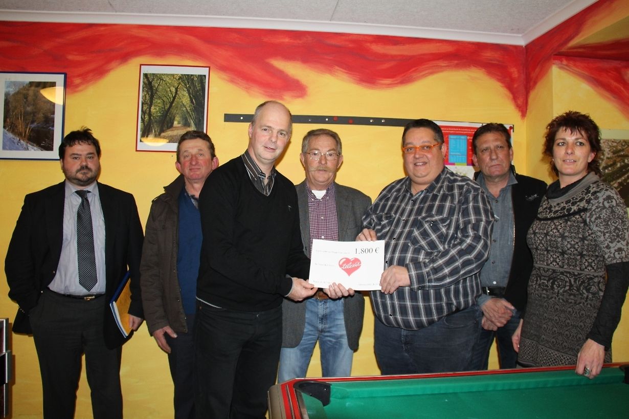 Am 18. März überreichte Präsident Adrian Wouters anlässlich der Generalversammlung des Interesseveräins Reiler einen Scheck von 1 800 Euro an Télévie. Bei der Spende ,die Georges Michels in Empfang nahm, handelt es sich um den Erlös des Burgbrennens. Das traditionelle Dorffest verbunden mit einem Preisfischen im Reiler Weiher findet diese Jahr am 3. Juli statt.