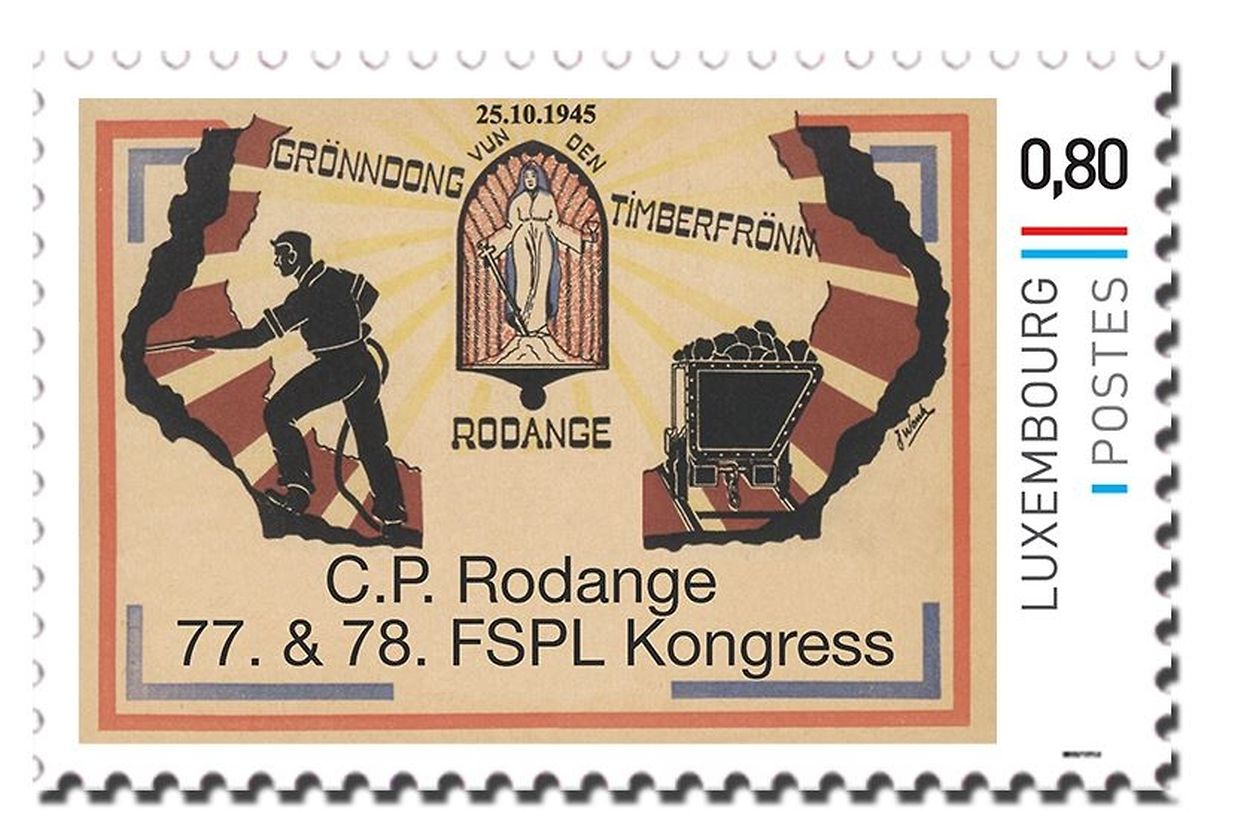 Der Veranstalter gibt für den 77. & 78. FSPL-Kongress einen Briefumschlag, 1 Briefmarke und die POST Philately einen dazu passenden Sonderstempel, welcher man an diesem Tag im Centre Culturel in Rodingen bekommen kann. Bestellungen können schon im Voraus gemacht werden bei: Herr Jeannot Piron, Telefon: 621 431 705 oder per Email: jpsg@pt.lu Sonderumschlag mit Briefmarke und Sonderstempel: 2,50 €.