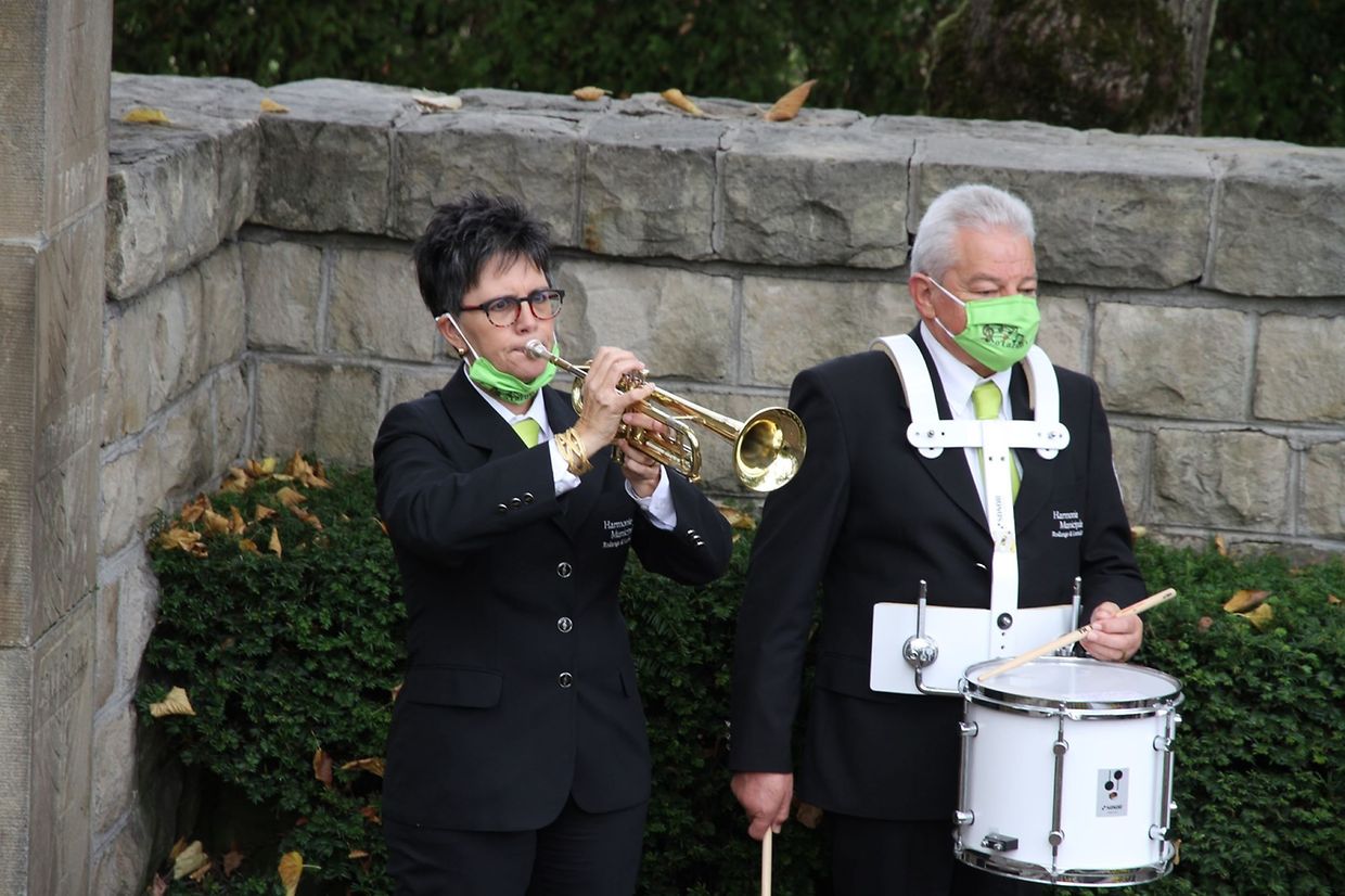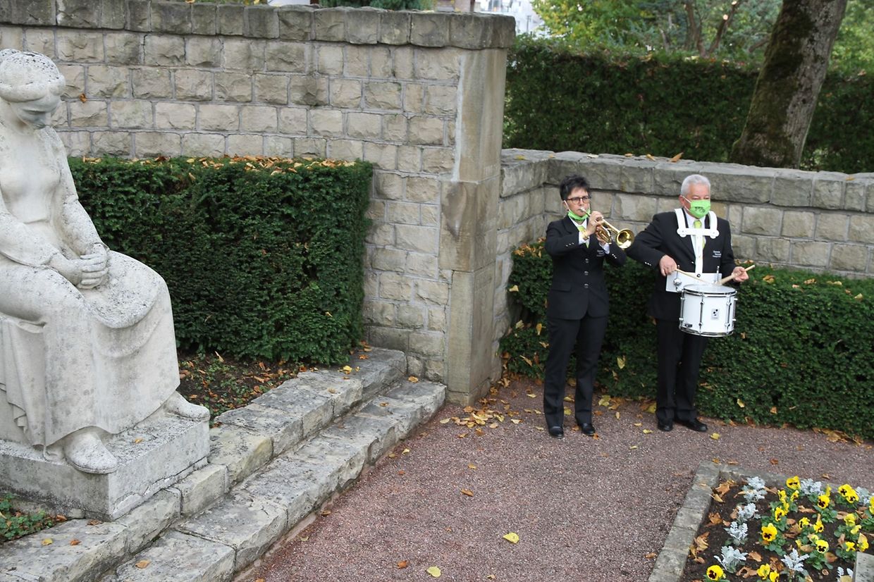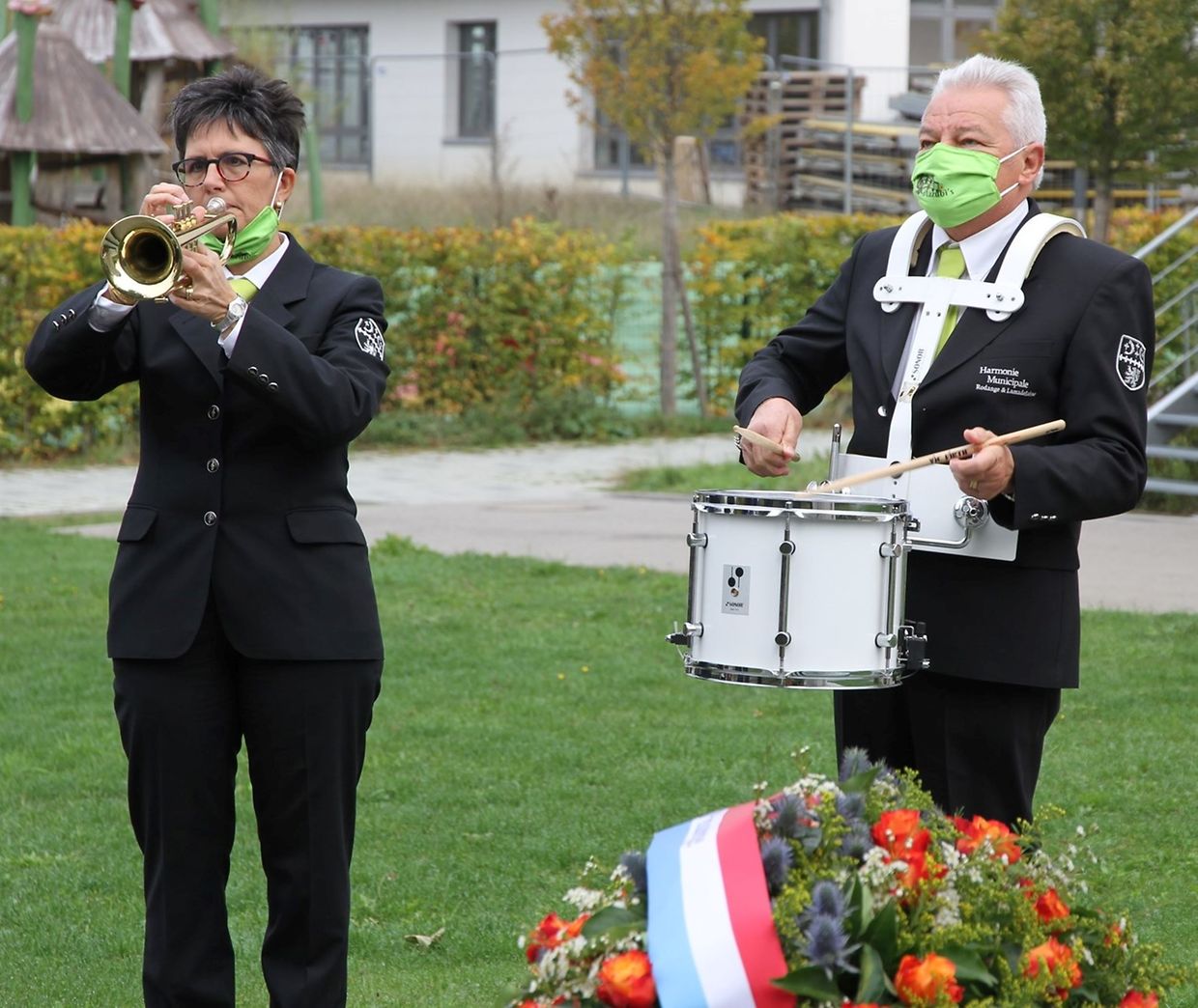 Die Musikgesellschaften wurden lediglich gebeten, 2 Musikanten zu delegieren, um mit Trompete und Marschtrommel, die "sonnerie aux morts" zu spielen. Diesem Aufruf kam die Harmonie Municipale Rodange & Lamadelaine selbstverständlich gerne nach und war bei den Monumenten in Lamadelaine und in Rodange dabei.