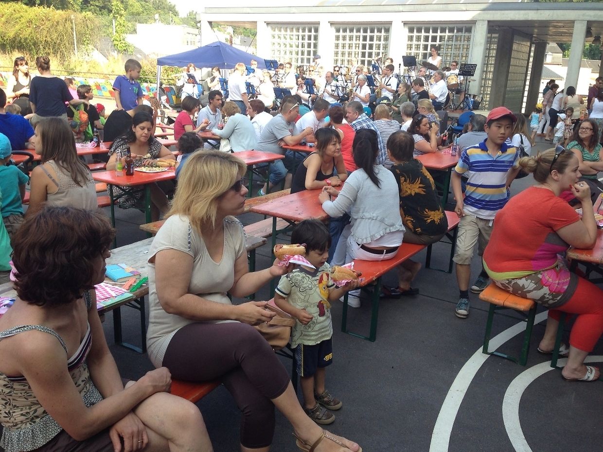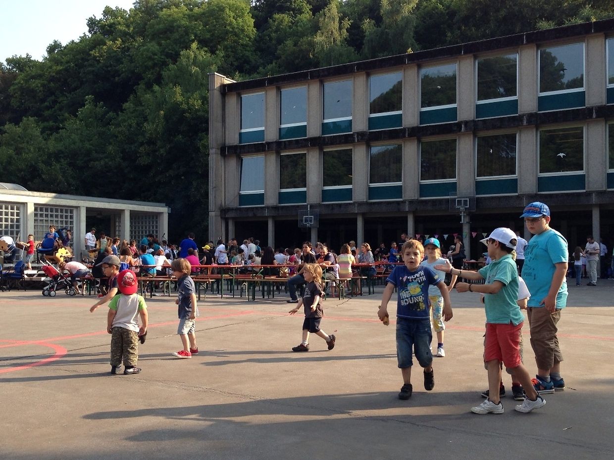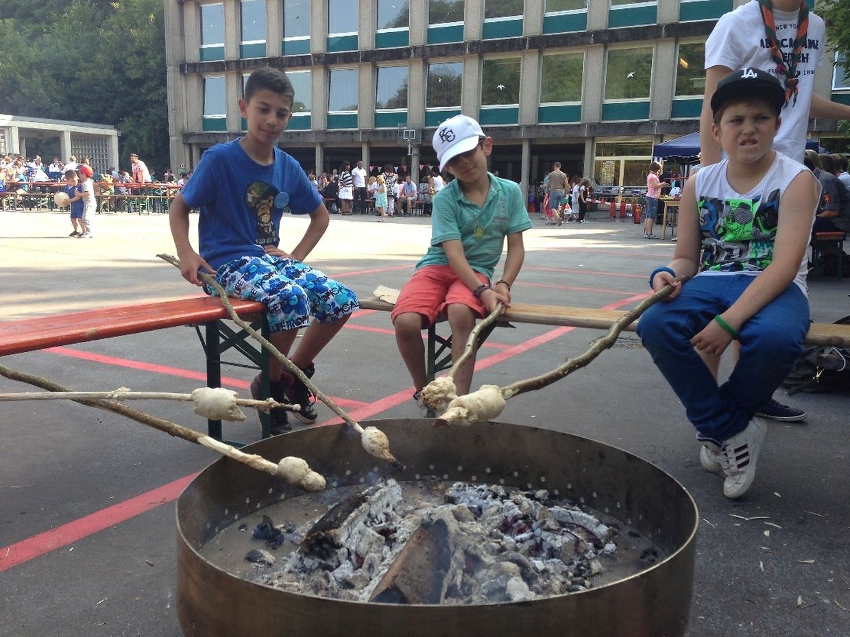 Zahlreiche Schüler waren Eltern mit ihren Eltern zum Schulfest gekommen. Für Unterhaltung hatten das Lehrpersonal und die Eltern bestens gesorgt: Die Feuerwehr zeigte Löschübungen, die Harmonie Rollingergrund gab ein Konzert, die Pfadfinder buken Brot am Spieß über offenem Feuer, es gab Thüringer und Koteletts vom Grill und auch die traditionellen "Eisekuchen", ob mit Schlagsahne und Erdbeeren oder nur gezuckert, fanden starken Absatz.