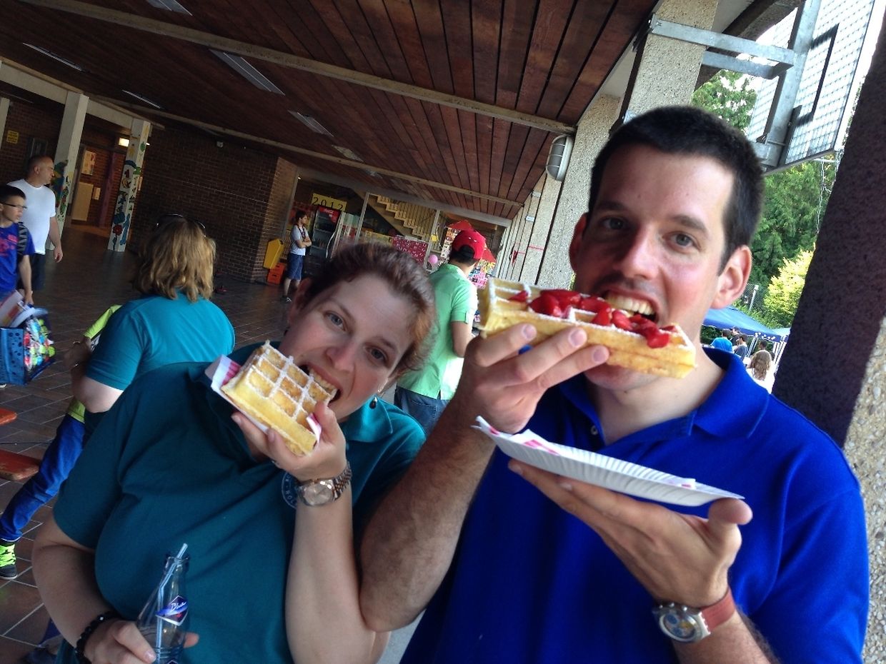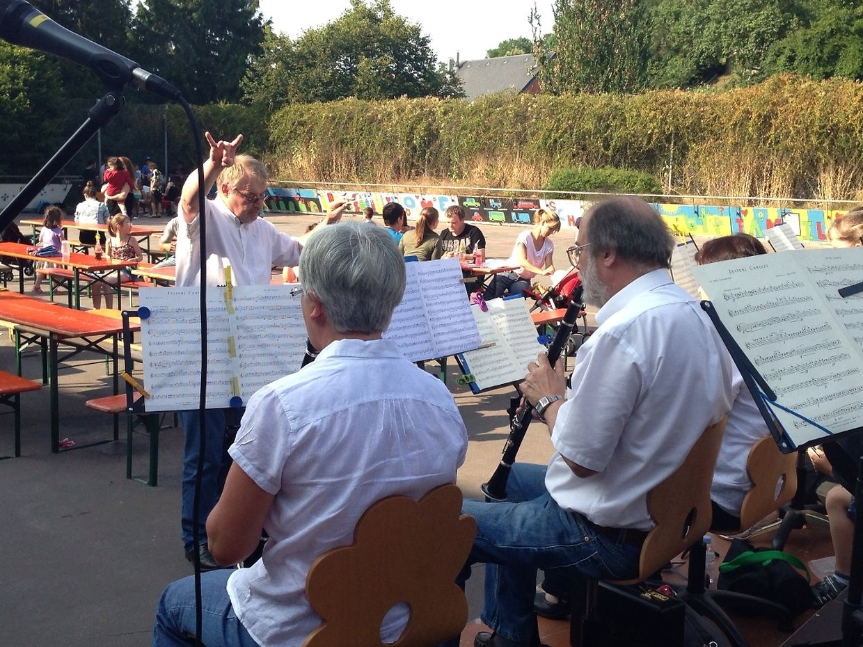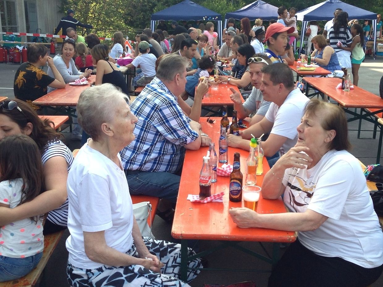 Zahlreiche Schüler waren Eltern mit ihren Eltern zum Schulfest gekommen. Für Unterhaltung hatten das Lehrpersonal und die Eltern bestens gesorgt: Die Feuerwehr zeigte Löschübungen, die Harmonie Rollingergrund gab ein Konzert, die Pfadfinder buken Brot am Spieß über offenem Feuer, es gab Thüringer und Koteletts vom Grill und auch die traditionellen "Eisekuchen", ob mit Schlagsahne und Erdbeeren oder nur gezuckert, fanden starken Absatz.