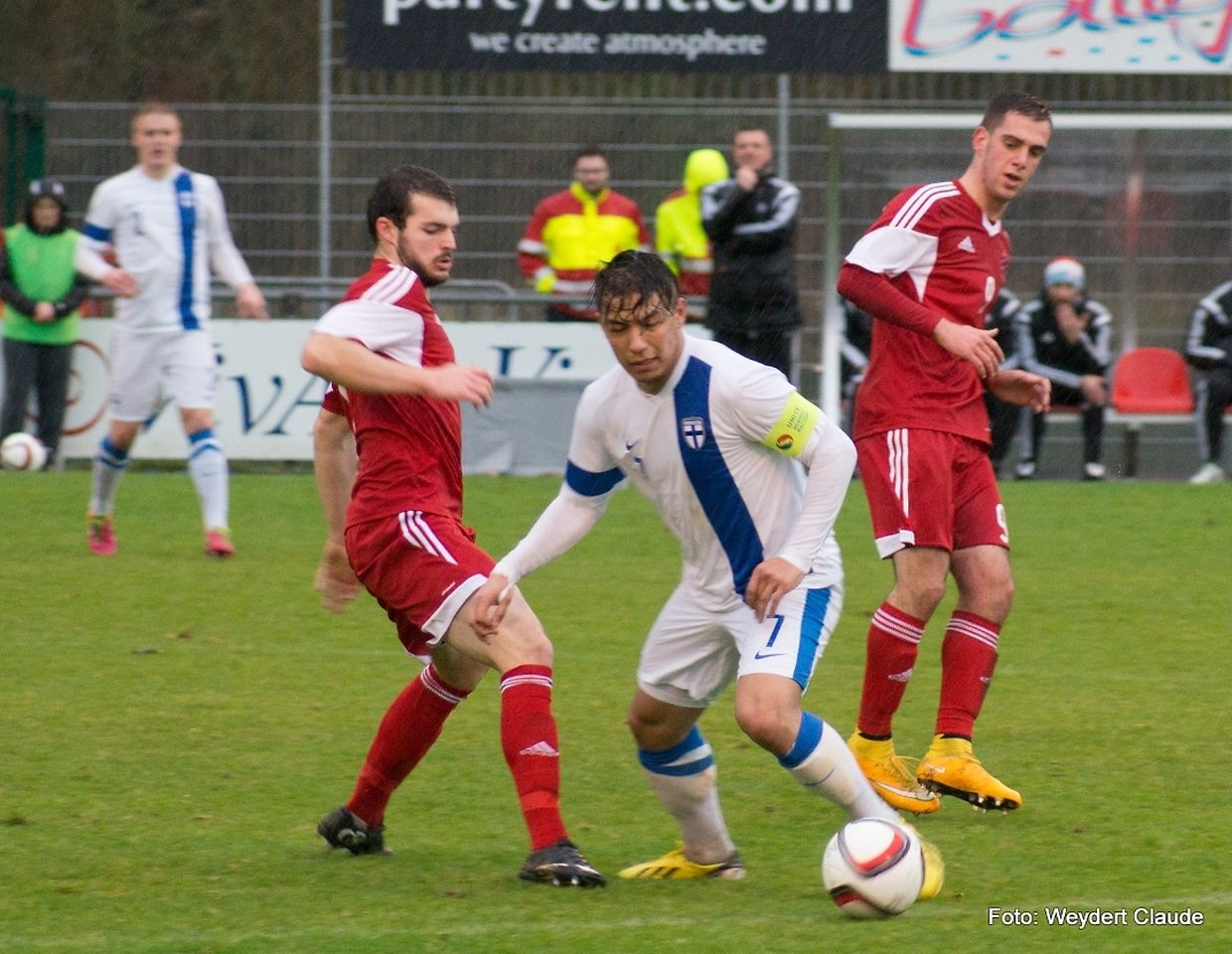Den 29ten März war zu Rouspert am Stade du Camping en offiziellen Lännermatch zwëschen den Natiounen Lëtzebeurg an Finnland. Virun ronn 320 Spectateuren huet et net lang gedauert bis den éischten Goal fir Finnland gefall ass (8 Minutt). D'Lëtzebeurger sen dun besser an d'Spill komm, mee d'Finnen hun nach en drop gesat an op 0:2 erheicht. An der 55 minutt gelengt den Rouden Léiwen den Uschlosstreffer zum 1:2, den awer d'Defaite um Enn net verhenneren konnt. Mat 1:4 verléiren Roud Léiwen géint hir Alterskollegen aus Finnland. Ze betounen bleiwt, dass déi 4 Goaler vun den Finnen all duerch Standard Situatiounen gefall sen.