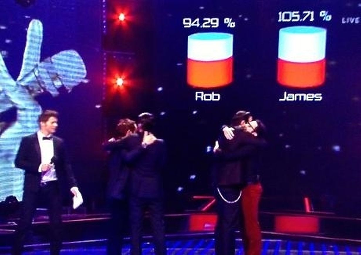 Doch schlussendlich kam es auf das Publikum an. Und das entschied sich für den Luxemburger. Am Ende erreichte James Borges aus Rümelingen 105 Prozent, die er also vorwiegend den Fans zu verdanken hatte, die per Telefon und SMS abgestimmt hatten. Damit sehen die Luxemburger TV-Zuschauer den sympathischen Borges am 14. Dezember im Finale wieder und dürfen sich jetzt schon freuen: Mit dabei sind neben den Finalisten auch die Weltstars Nelly Furtado, Leona Lewis und Robbie Williams. (Foto: Screenshot)