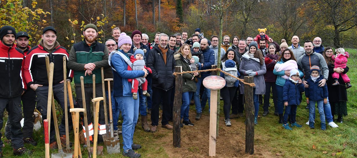 Sëll: Och den Dag vum Bam 2022 ass dest Joer an der klenger Gemeng Sëll gefeiert gin. Zesummen mat de Gemengevertrieder, dem Fieschter Thierry Hollerich mat sengem Team, dem Technischen Service an dene klenge Kanner mat hiren Elteren, ass an der Wiss „ Am Gaart“ zu Sëll een Äpplelbam geplantzt gin. Ugaangs huet de Buergermeeschter Jang Konsbrück no senge Wëllkommensgréiss a Wierder vu merci op de Sënn an Zweck vun deser naturverbonnener Planzaktioun, déi zesummen mat der lokaler Gaart an Heem Sektioun organiséiert gouf, higewissen, wou dese Bam dene klenge Sëller, déi am Laaf vum Joer 2021 – 2022 op d’Welt kommen sin, geduecht ass an si och bei deser Geleeënheet als nei Matbierger können ze begréissen. An dem Kontext ass och eng Plakette aus Holz mat den Nimm vun allen ronn 20 Neigebuerenen Als Erënnerung bei de Bam gesaat gin. Als Ofschloss vun deser Planzaktioun huet d’Gemengeverwaltung Sëll op e Patt mat engem gudde Maufel an de Festsaal zu Sëll invitéiert, wou och all Elteren e Rauchmelder mat engem Bong konnten en Empfang huelen, fir sech e Bam no hirer Wiel können unzeschaafen. (CR) (FOTo: Charles Reiser)