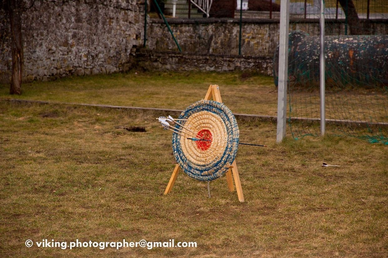 Das Zusammensetzen der Pfeile ging recht schnell, so daß wir am Nachmittag anfangen konnten, unsere Bögen einzuschießen, was eine Menge Spass machte.