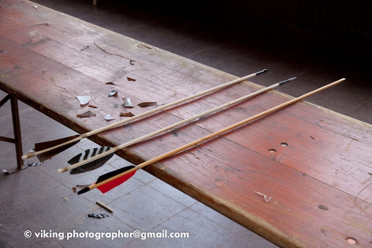 Am Sonntag nun machten wir uns an die Pfeile. Einige montierten sich historische Spitzen an die Pfeile, wiederum andere nahmen sich moderne Spitzen um auch damit schießen zu können.