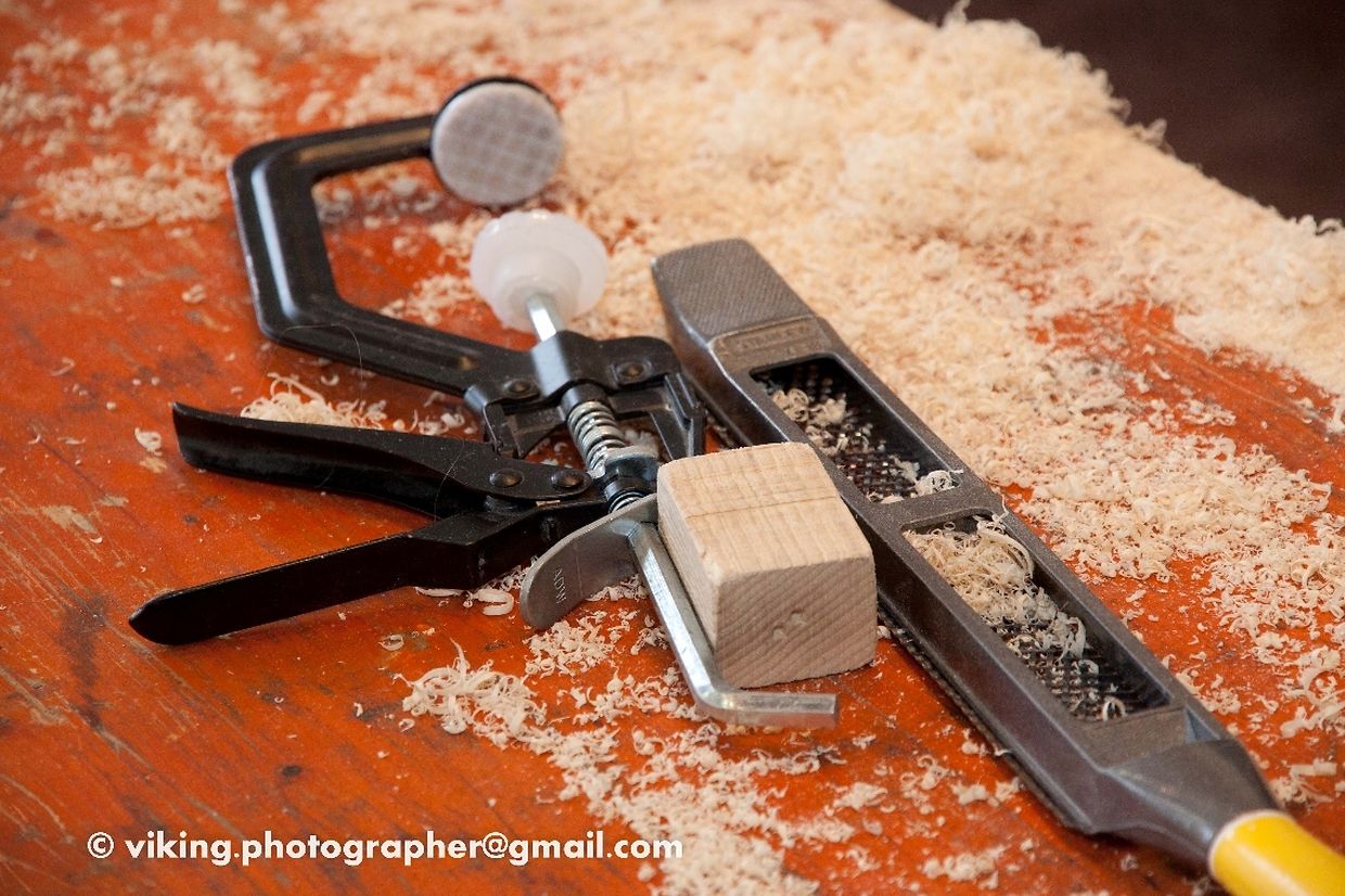 Nach einer kleinen Einführung in die Entwicklung des Bogens, fingen wir sofort an, unsere Holzrohlinge zu bearbeiten. Dazu kamen Raspel, Ziehmesser und Hobel zum Einsatz.