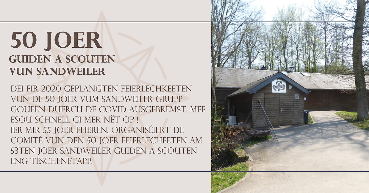 Ier mir 55 Joer feieren, organiséiert de Comité vun den 50 Joer Feierlecheeten am 53ten Joer Sandweiler Guiden a Scouten eng Tëschenetapp.