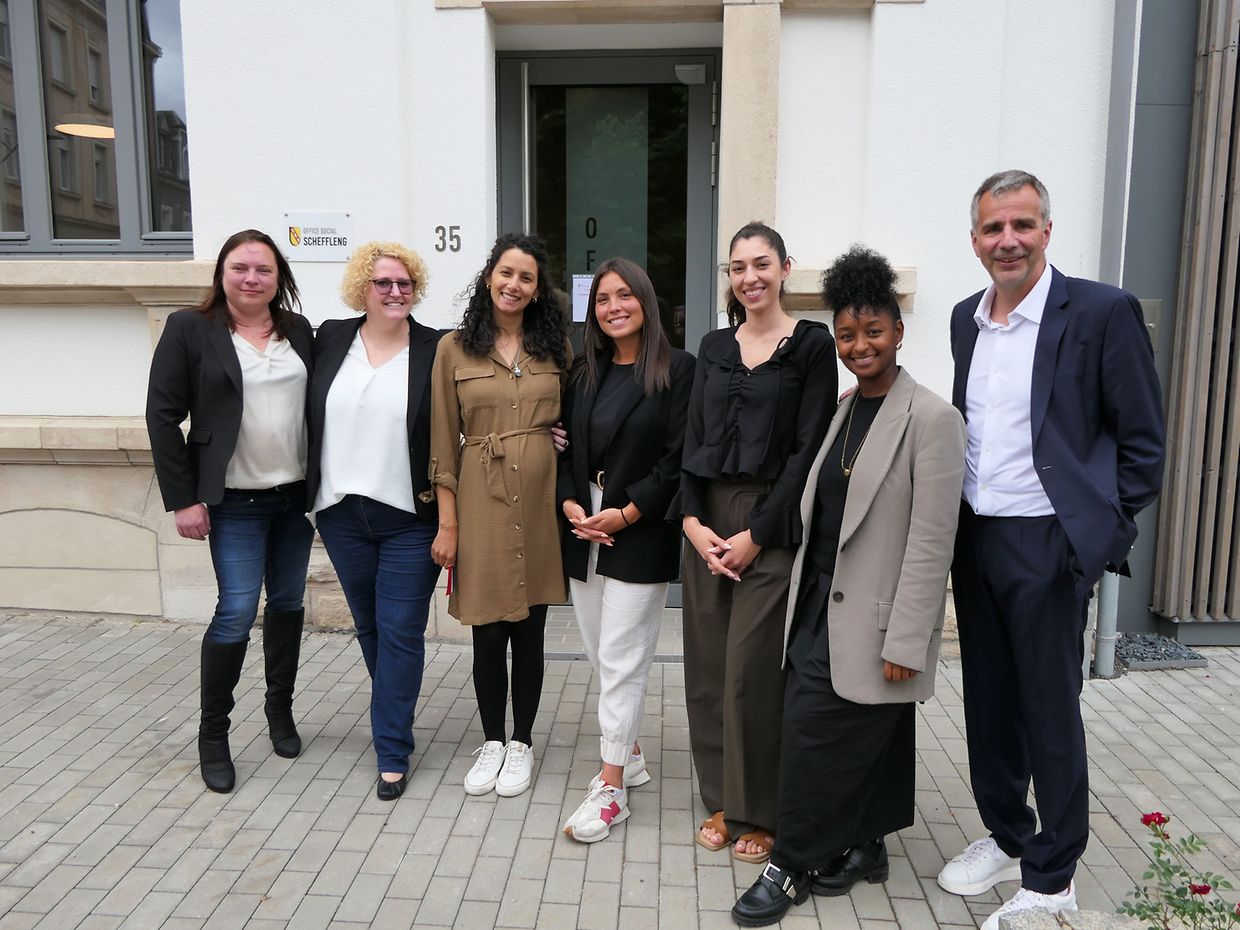 De Max Hahn, Minister fir Famill, Solidaritéit, Zesummeliewen an Accueil zesumme mam Gemengerot, souwéi d’Representantë vum Office social vu Schëffleng, hunn de 5. Juni 2025 déi nei Raimlechkeete vum Office Social op 35 rue de l’Église ageweit.
