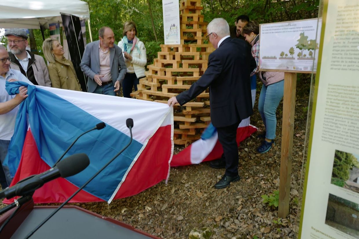 Den 18. Mee 2023 ass de Schëfflenger Waasserwee am Schmëttbësch a Presenz vun de Membere vum Schäffen- a Gemengerot a ganz ville Projetspartner ageweit ginn.