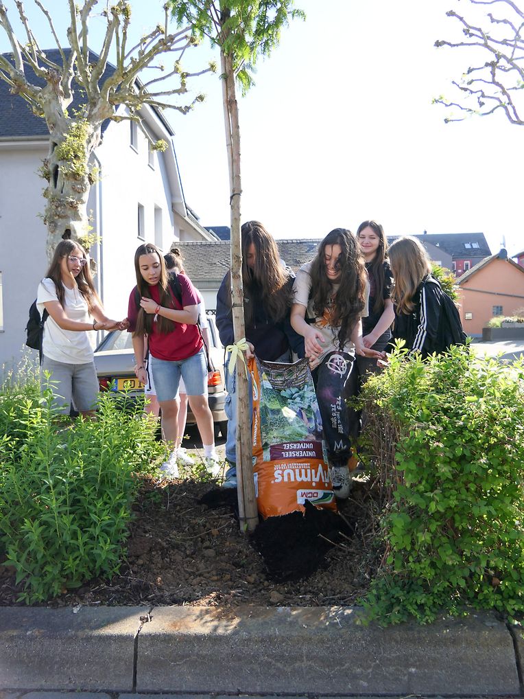 Mat der Ënnerstëtzung vu Mon Jardin goufen insgesamt 12 Beem (Metasequoia) geplanzt – eng wichteg Initiativ fir eis Ëmwelt a Schoulgemeinschaft. Dës Aktioun war net nëmmen e symbolesche Geste fir méi Gréngs ze schafen, mä och eng konkret Hëllef fir d’Natur.