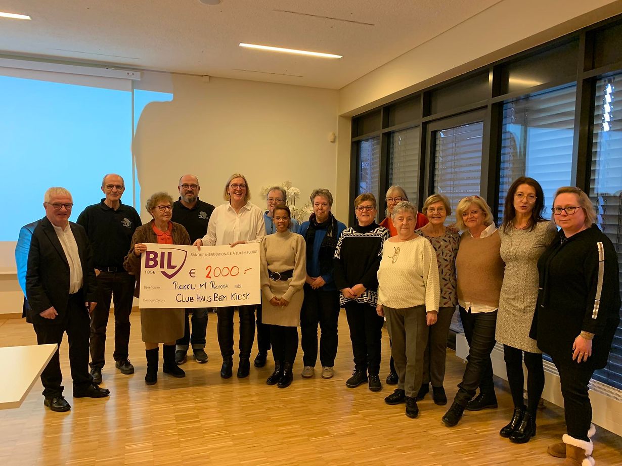Mat dem Erléiss vum Verkaf vu selwer gekachtem Gebeess, dem Verkaf vun Adventskalenneren an dem Bitzasaatz vun de Fläissegen Hänn konnt Club Haus beim Kiosk ee generéisen Don iwwerreechen. Dëst Joer goung et un asbl Rokku Mi Rokka, déi sech asetzt fir behënnert Kanner am Senegal de Wee zur Beschoulung ze erméiglechen. 2000 Euro konnten um Neijoerschpatt vum Club Haus beim Kiosk (Foyers seniors asbl) den 11. Januar 2024 feierlech iwwerreecht ginn. Vue que dass de Solidaritéitsgedanken och bei de Schëfflenger Gemengenverantwortlechen ee grousse Stellewäert huet, gouf den Don verduebelt op also 4000 Euro, déi vum Yves Theisen an dem Christian Misteri vun Rokku Mi Rokka entgéintgeholl konnte ginn. Merci all den treien Clients vum Club haus beim Kiosk, déi des Aktiounen all Joer nees ënnerstëtzen.