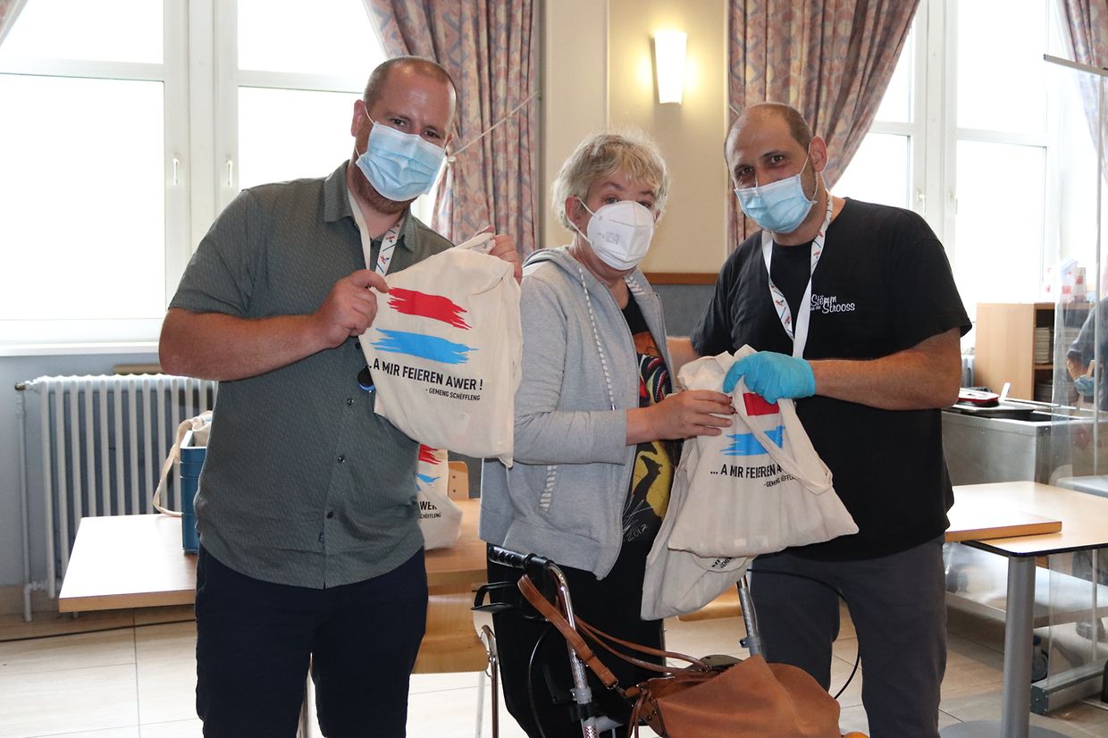 Au vu de la grande quantité de sacs alimentaires, une partie a même pu être envoyée au site de la Stëmm vun der Strooss à Hollerich, où les clients se sont également réjouis de recevoir ces généreux présents. De plus, il s’agit de sacs écologiques que les bénéficiaires de la Stëmm peuvent désormais utiliser régulièrement pour apporter leurs boîtes à repas.