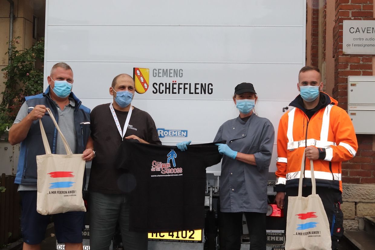 La Commune de Schifflange tient à remercier la Stëmm vun der Strooss d’avoir accepté les dons en nature, mais également notre Atelier communal pour l’organisation logistique autour des paquets.