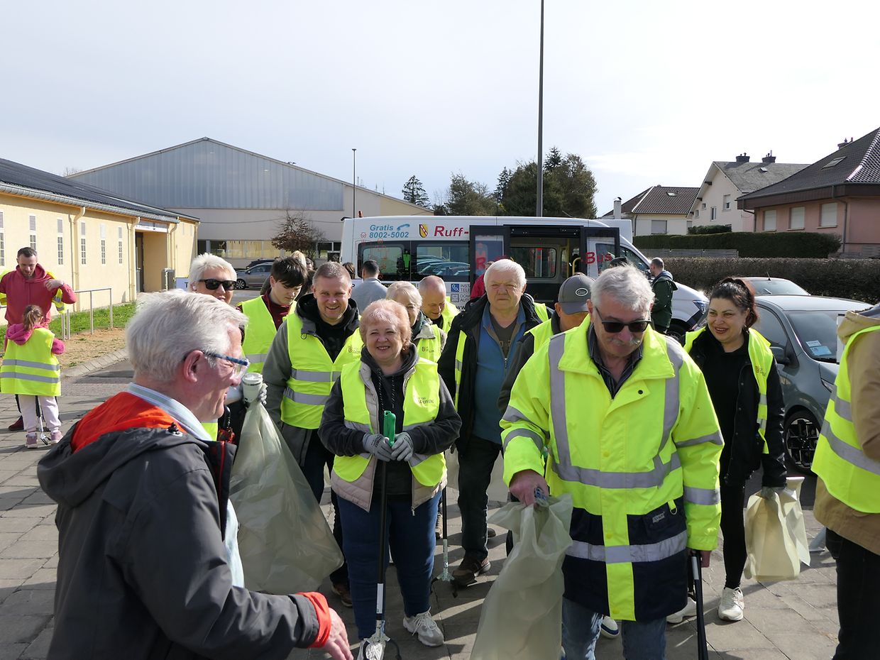 D’Participant·inn·en, dorënner och vill Kanner, d’Jugendpompjeeën, d’Jugendhaus awer och Memberen aus dem Gemengerot an aus verschiddene Kommissiounen, waren um Start an hunn d’Trottoiren, d’Bësch- an d’Vëlosweeër sou gutt wéi méiglech propper gemaach.