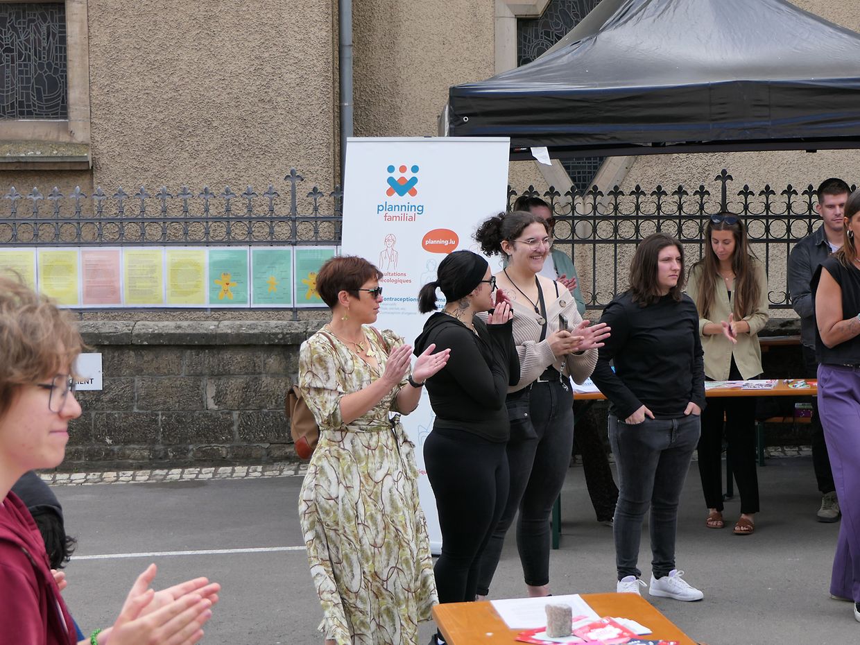 Sur Place war och, en Informatiounsstand vum Planning Familial, wou d’Visiteure·se sech iwwert wichteg Themen am Zesummenhang mat Gesondheet a Sexualitéit informéiere konnten an et goufen Zeienaussoe vu Leit, déi Diskriminatioun erlieft hunn, gedeelt. An Zesummenaarbecht mam Géisskan Kollektiv ass dann och e Poetry Slam organiséiert ginn, hei hunn dräi jonk a kreativ Slamer·innen hier eege Gedichter virgedroen.