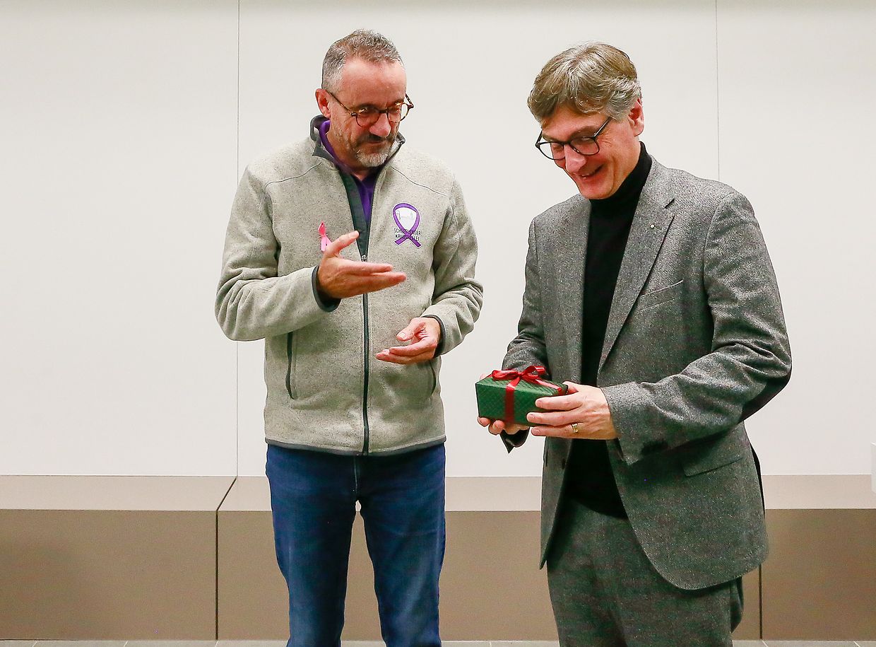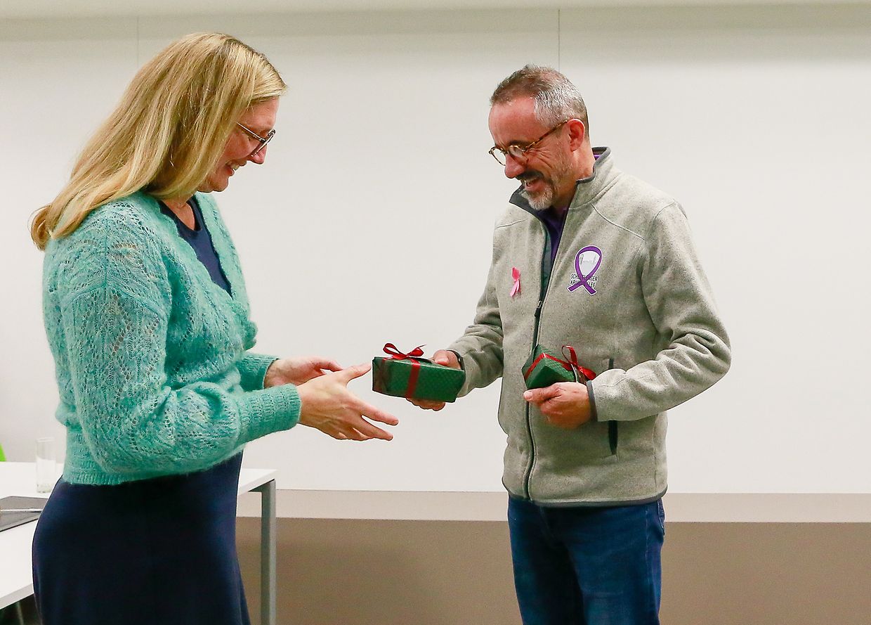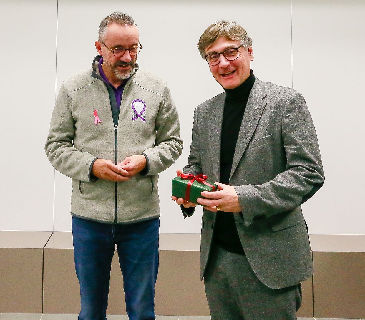 Präsident Georges Kuhn würdigte abschließend die beiden Sprecher mit kleinen Präsenten und lud die Anwesenden zu einem kleinen Umtrunk ein.
