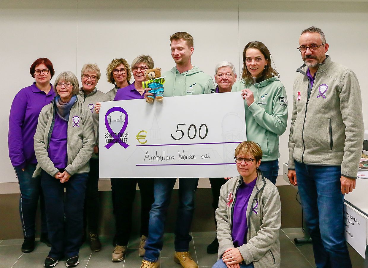 Die Konferenz endete mit der Überreichung von Schecks in Höhe von 500 Euro an drei Organisationen, darunter Schmitz Jean-Marie von Wonschkutsch und Susanne Verhoog-Bulk sowie Bryan Weis von Ambulanz Wonsch. Fabian Weiser vom Verwaltungsrat nahm den Scheck für Haus Omega 90 entgegen.