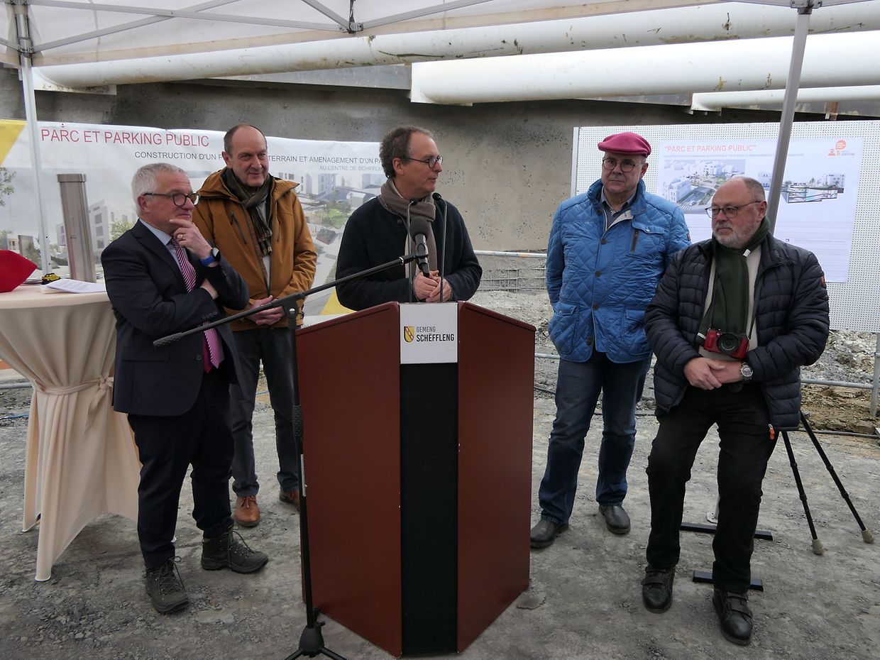 De Buergermeeschter, Paul Weimerskirch, huet a senger Usprooch un d’Leit de berühmte Saz “Do wou gehuewelt gëtt, fale Spéin…” benotzt an hinnen e grousse Merci ausgedréckt fir d’Gedold an de Versteesdemech. D’Resultat wäert awer ganz sécher eng Plus-Value fir d’Gemeng, hir Geschäfter, Restauranten an Awunnner ginn – dëst och ënner anerem well e richteg flotte Park, also eng Gréngfläch mat enger Spillplaz, iwwert dem Parking wäert entstoen.