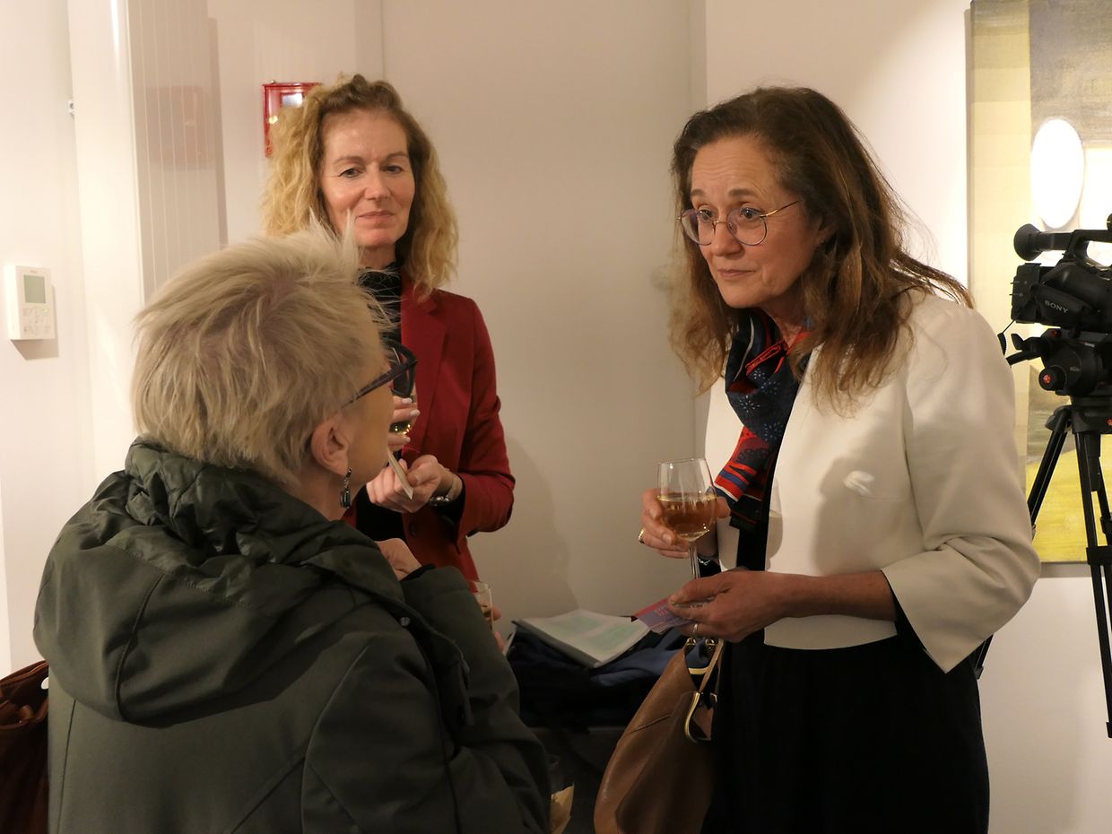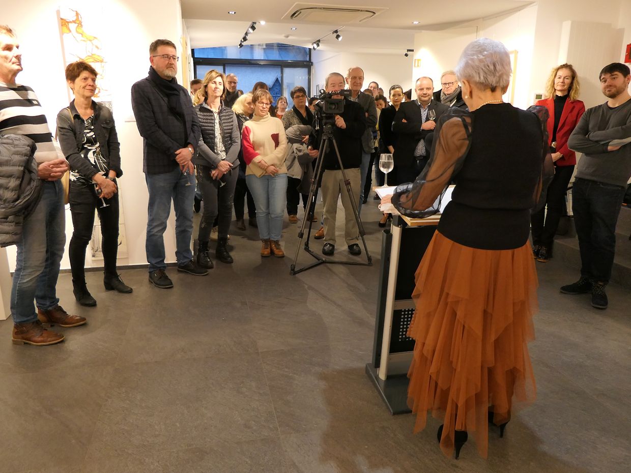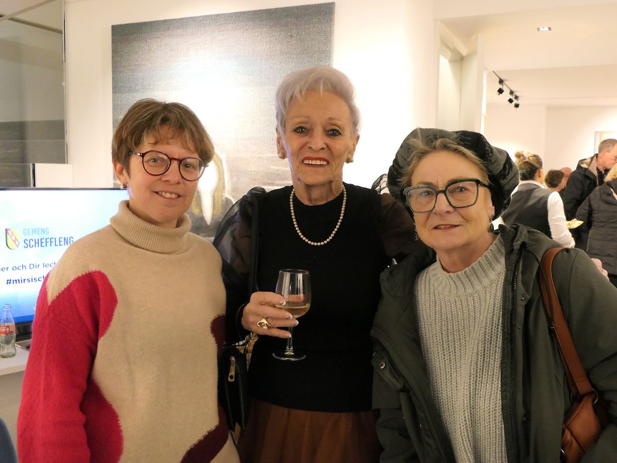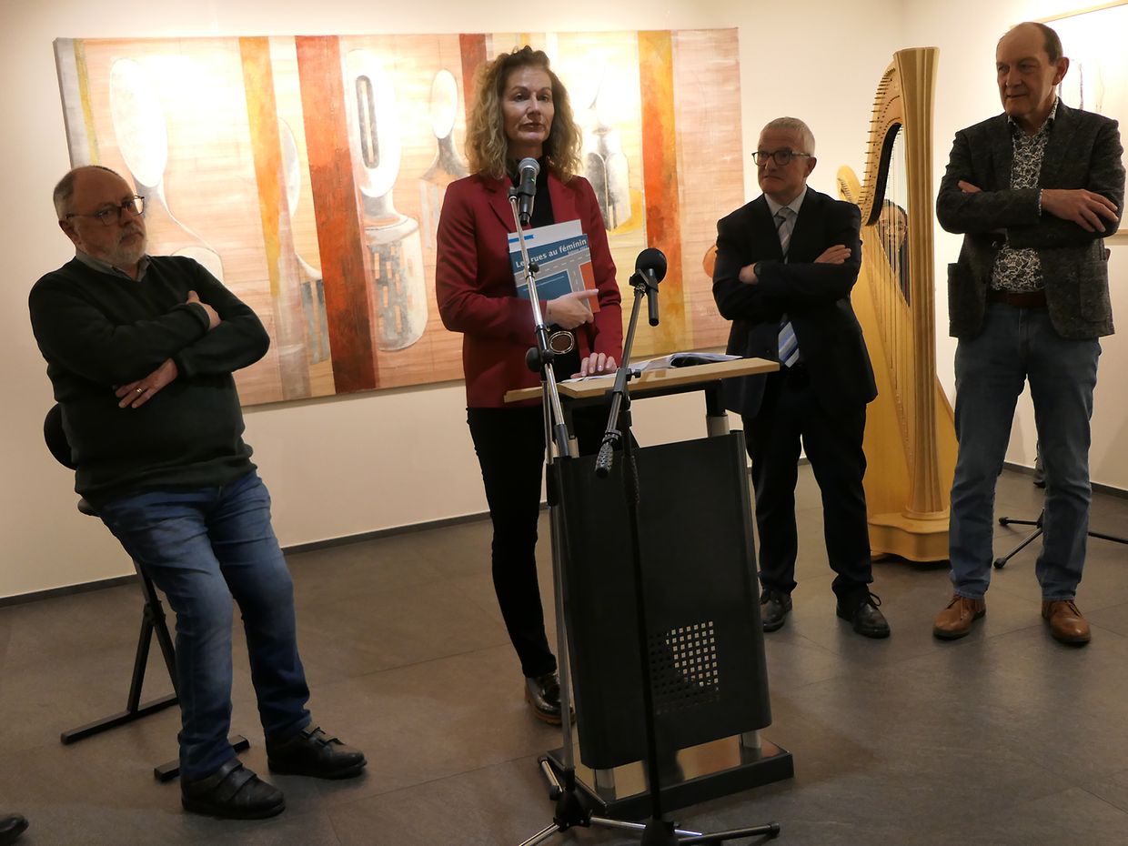 No der Ënthüllung vum Schëld op der Gemengeplaz goung et op en Empfang an d’Galerie “Schëfflenger Konschthaus” invitéiert. Hei sinn den Här Buergermeeschter Paul Weimerskirch an d’Madamm Monique Stein, Responsabel vum Service “Politique communale d’égalité entre Femmes et Hommes” vum CNFL, op d’Wichtegkeet vum internationale Fraendag agaangen an hunn d’Campagne mat den zwee Projete virgestallt. De President vun der Chancëgläichheetskommissioun Carlo Lecuit an d’Conseillère Idette Cattivelli hunn an hire Riede weider Aspekter vun der Fra an der fréierer an haiteger Gesellschaft beliicht. An engem Zesummeschnëtt vun dräi Videoen huet d’Gemeng am Kader vum Fraendag an en vue vun de Gemengewalen déi dräi aktuell Conseillèren zu hirer Aarbecht am Gemengerot befrot. D’Kënschtlerin Iva Mrazkova, déi déi aktuell Ausstellung « Études sur le Temps Présent » ebenfalls an de Kader vum Fraendag gesat huet, huet den Invitéeë sur place an Abléck an hier Wierker ginn. Speziell fir d’Inauguratioun hat si zwee Portraiten vun Fraen, der Madamm Marie-Thérèse Zerbato-Koenner (fréier Léierin zu Schëffleng) an der kierzlech verstuerwener Lëtzebuerger Lyrikerin Anise Koltz. D’Ausstellung kënnt Dir nach bis den 1. Abrëll besichtegen.