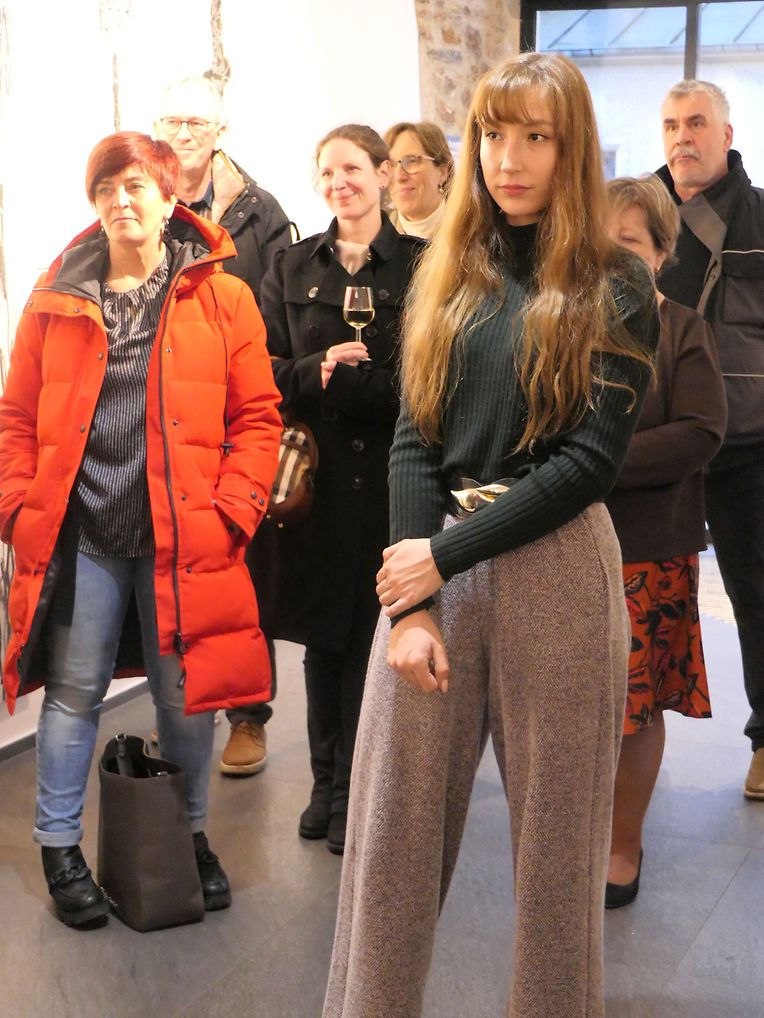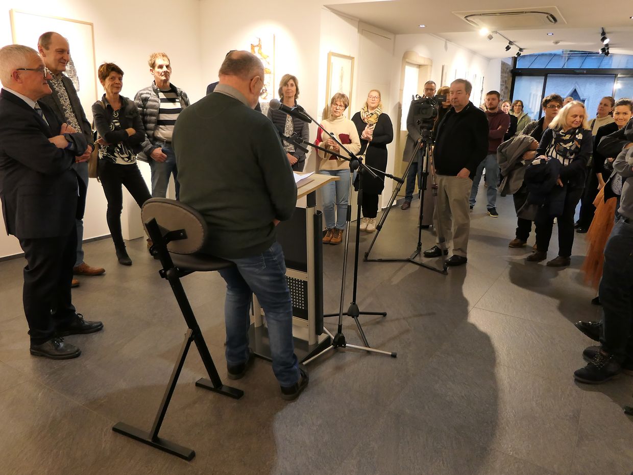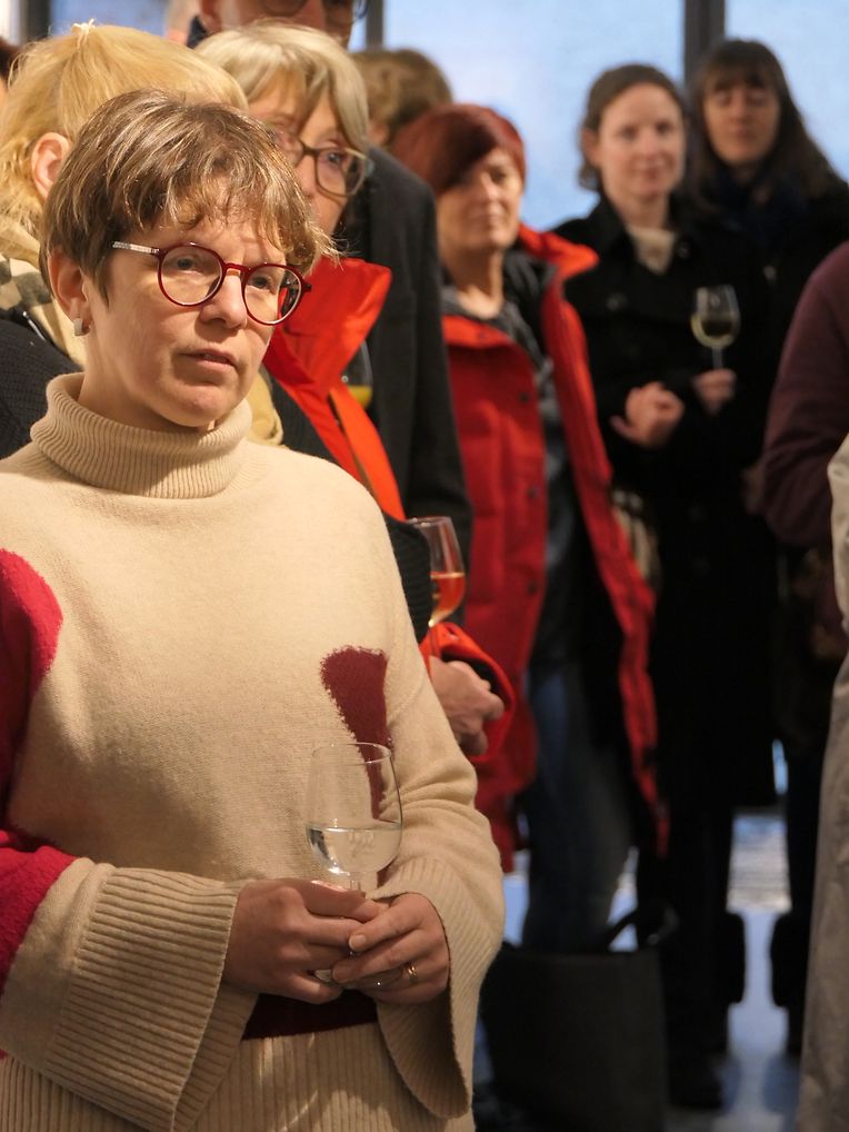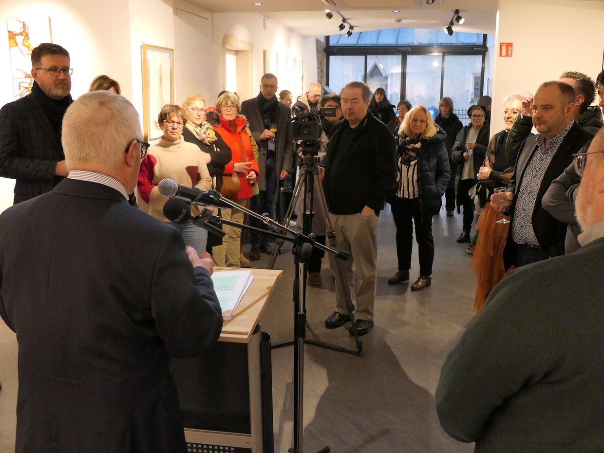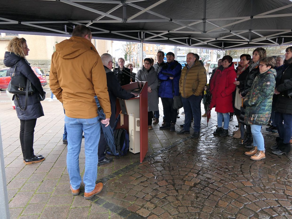 No der Ënthüllung vum Schëld op der Gemengeplaz goung et op en Empfang an d’Galerie “Schëfflenger Konschthaus” invitéiert. Hei sinn den Här Buergermeeschter Paul Weimerskirch an d’Madamm Monique Stein, Responsabel vum Service “Politique communale d’égalité entre Femmes et Hommes” vum CNFL, op d’Wichtegkeet vum internationale Fraendag agaangen an hunn d’Campagne mat den zwee Projete virgestallt. De President vun der Chancëgläichheetskommissioun Carlo Lecuit an d’Conseillère Idette Cattivelli hunn an hire Riede weider Aspekter vun der Fra an der fréierer an haiteger Gesellschaft beliicht. An engem Zesummeschnëtt vun dräi Videoen huet d’Gemeng am Kader vum Fraendag an en vue vun de Gemengewalen déi dräi aktuell Conseillèren zu hirer Aarbecht am Gemengerot befrot. D’Kënschtlerin Iva Mrazkova, déi déi aktuell Ausstellung « Études sur le Temps Présent » ebenfalls an de Kader vum Fraendag gesat huet, huet den Invitéeë sur place an Abléck an hier Wierker ginn. Speziell fir d’Inauguratioun hat si zwee Portraiten vun Fraen, der Madamm Marie-Thérèse Zerbato-Koenner (fréier Léierin zu Schëffleng) an der kierzlech verstuerwener Lëtzebuerger Lyrikerin Anise Koltz. D’Ausstellung kënnt Dir nach bis den 1. Abrëll besichtegen.