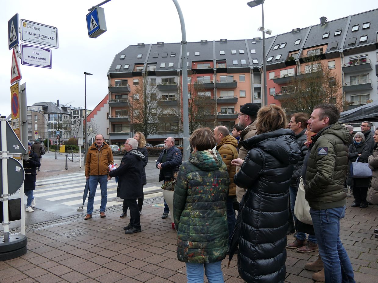 An Zesummenhang mat den zwee Projeten “Affichons l’égalité” an “Who is she?”, alle béid deel vun der Campagne, huet de Schäfferot den 8. Mäerz, um internationale Fraendag, op d’Inauguratioun vu béide Projeten op d’Gemengeplaz invitéiert. An der Presenz vun de Memberen aus dem Schäffen- a Gemengerot, de Schëfflenger Kommissiounen an de Familljemembere vun de geéierte Schëfflenger Damme gouf eent vun de provisoresche Schëlter symbolescht enthuelt. Ewéi scho bei der Editioun 2021 wäerten och dëst Joer eng Rei Schëfflenger Stroossen bis Enn Mäerz symbolesch ëmbenannt ginn: