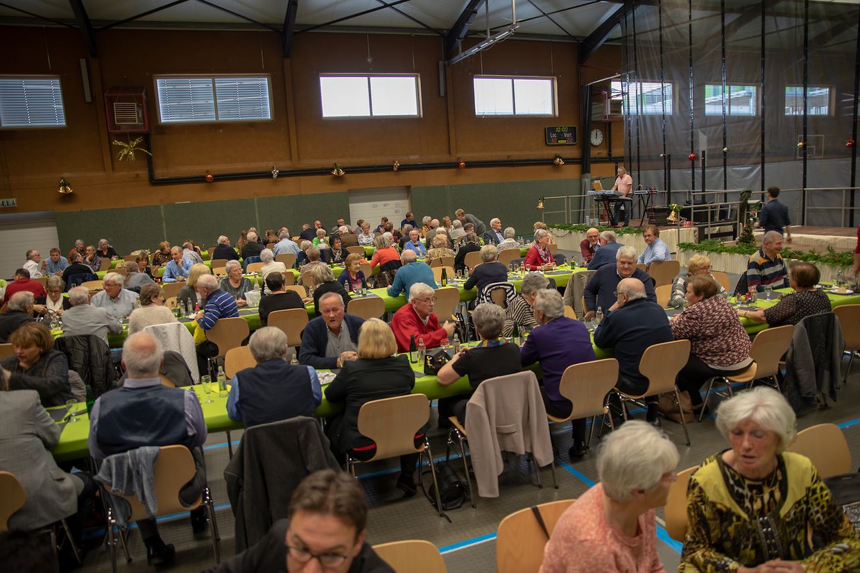 Gemeinde Dippach. Mit über 170 Beteiligten fand am 24. November in der Sportshalle in Schouweiler die alljährliche Rentnerfeier statt, welche dieses Jahr von der intergenerativen Kommission organisiert wurde. Bürgermeisterin Manon Bei-Roller, zusammen mit den Schöffen Max Hahn und Jean-Paul Bleser und den Mitgliedern der Kommission, begrüsste alle Anwesenden und wünschte ihnen im Vorfeld ein frohes Weihnachtsfest. Nach einem traditionnellen luxemburger Mittagessen, sowie einem weihnachtlichen Nachtisch sang der Youth Choir der Musikschule unter der Leitung vun Suzie Thomé. Zum Verkauf standen Weihnachtsdekorationen, welche von Einwohnern der Gemeinde gebastelt wurden, der Erlös wird an die Organisation « Ile aux Clowns » gespendet. Für die musikalische Untermalung sorgte der bekannte Musiker Nico Bidinger. Zum Abschied erhielten alle Teilnehmer ein Geschenk mit regionalen Produkten.