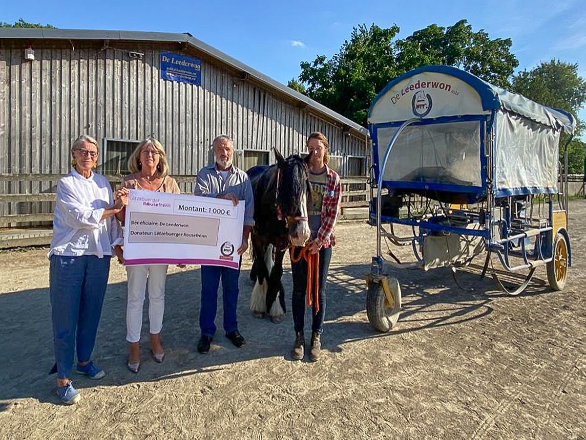 Am 6. Juli 2022 haben die Lëtzebuerger Rousefrënn a.s.b.l. dem gemeinnützigen Verein „De Leederwon“ auf dessen Hof in Betzdorf eine Spende in Höhe von 1000 Euro überreicht.