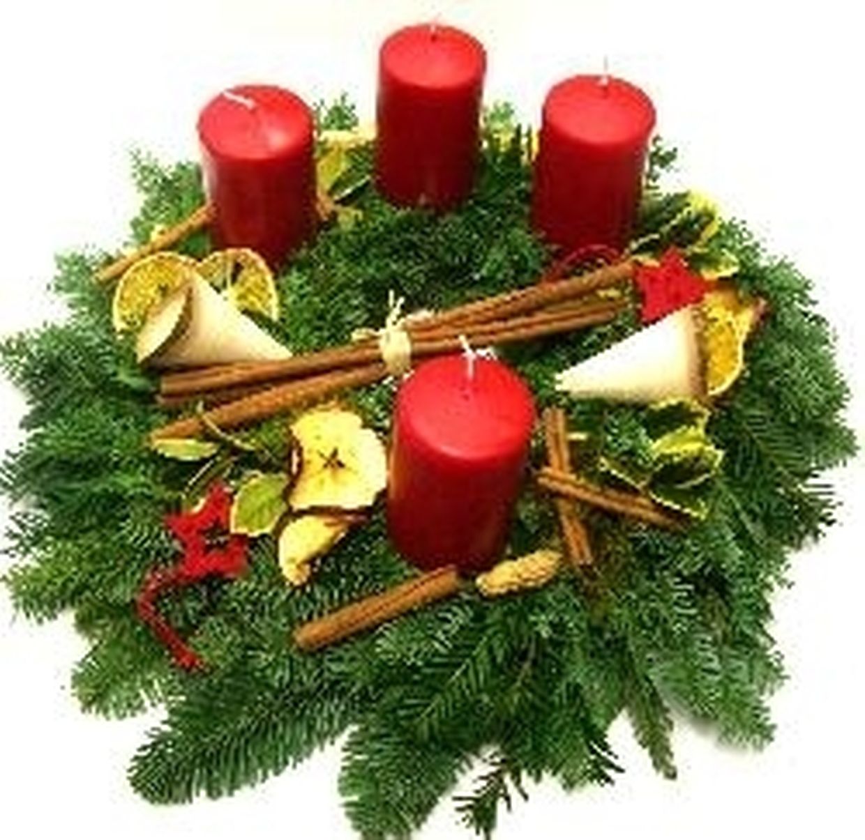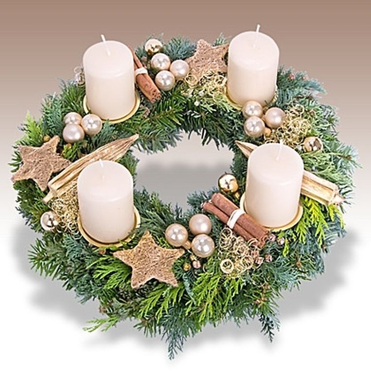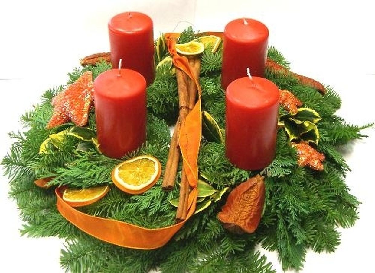 Dir kennt fir d'Faarf vun de Käerzen wielen tëschend rout, bordeaux, terracotta, mauve oder champagne; d'Kränz kaschten 30,- €