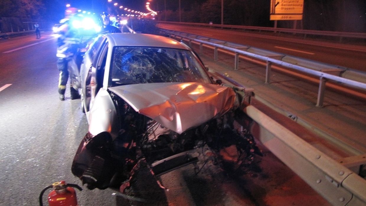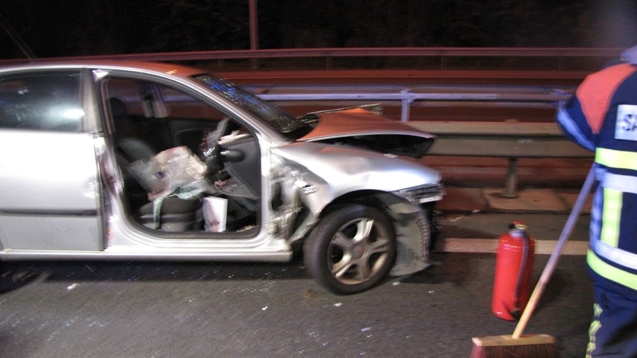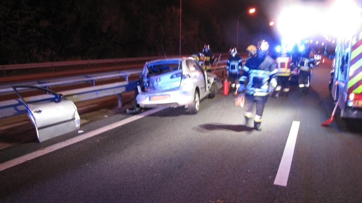 Aus bisher ungeklärter Ursache verunfallte eine Person mit seinem PKW auf der Höhe der Autobahntankstelle in Richtung Esch. Der Aufprall war so heftig dass der Motorblock aus dem Fahrzeug geschleudert wurde und die Person aus ihrem Gefährt befreit werden musste.