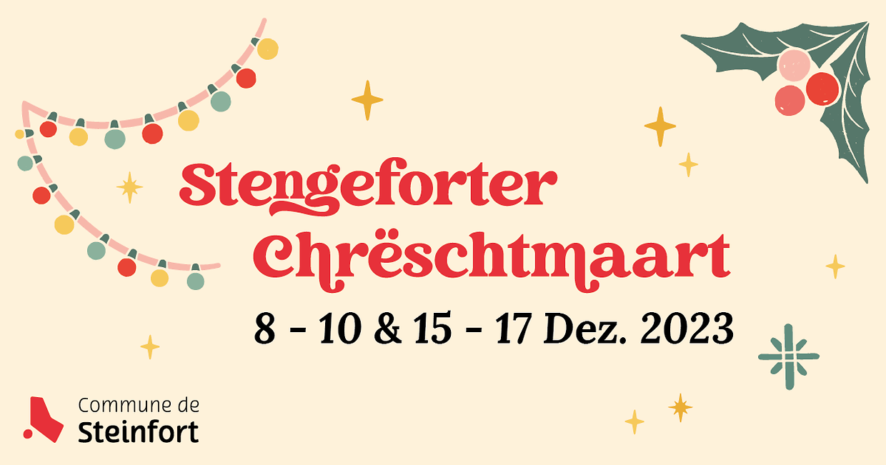 Weitere Informationen finden Sie auf der offiziellen Website: https://www.steinfort.lu/culture-et-loisirs/evenements-communaux/chreschtmaart-2.