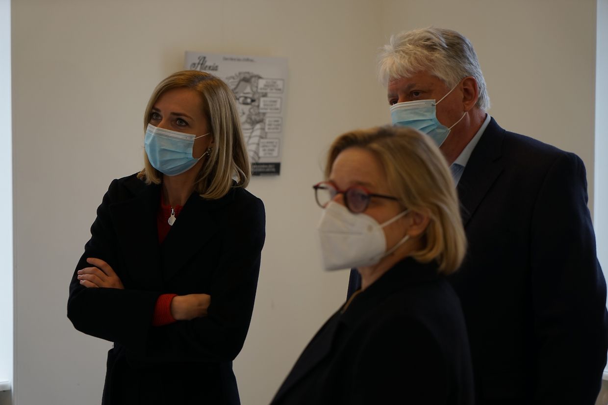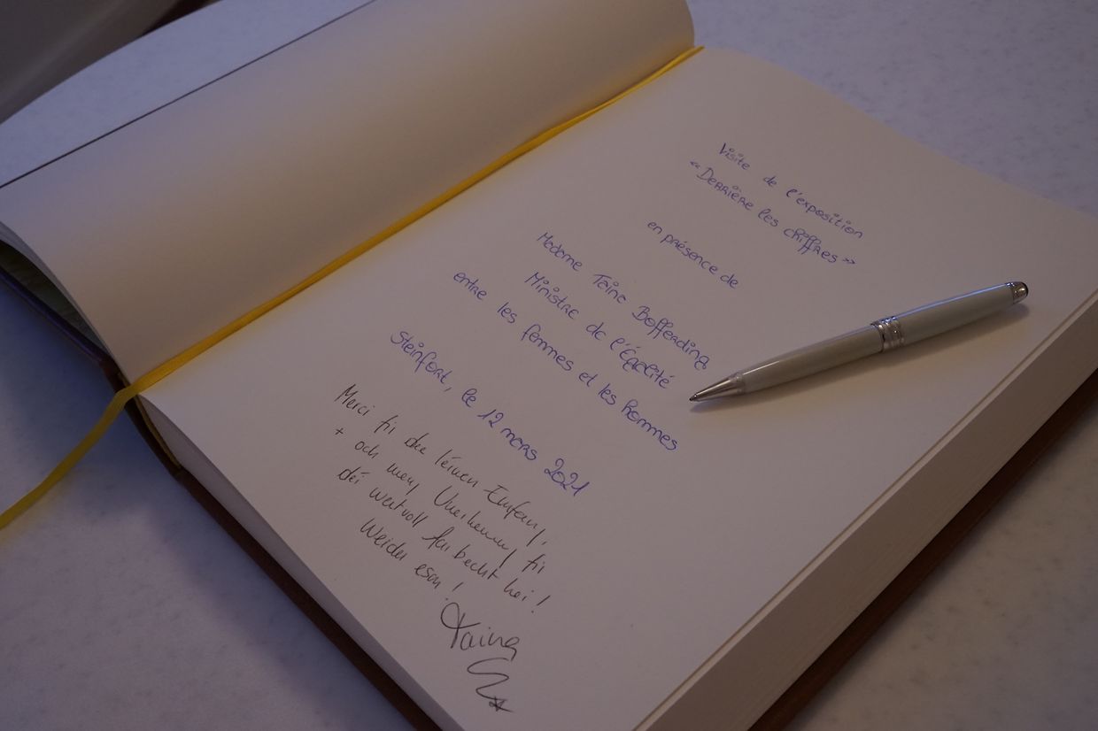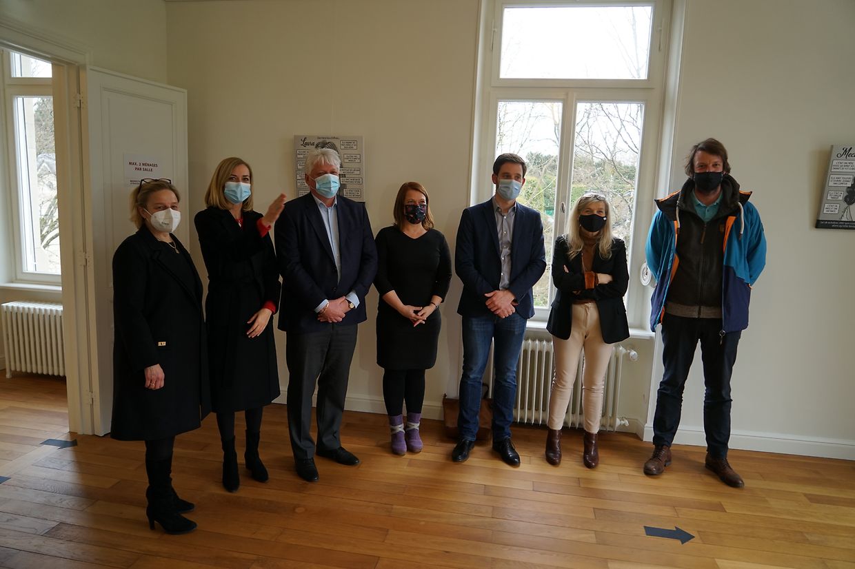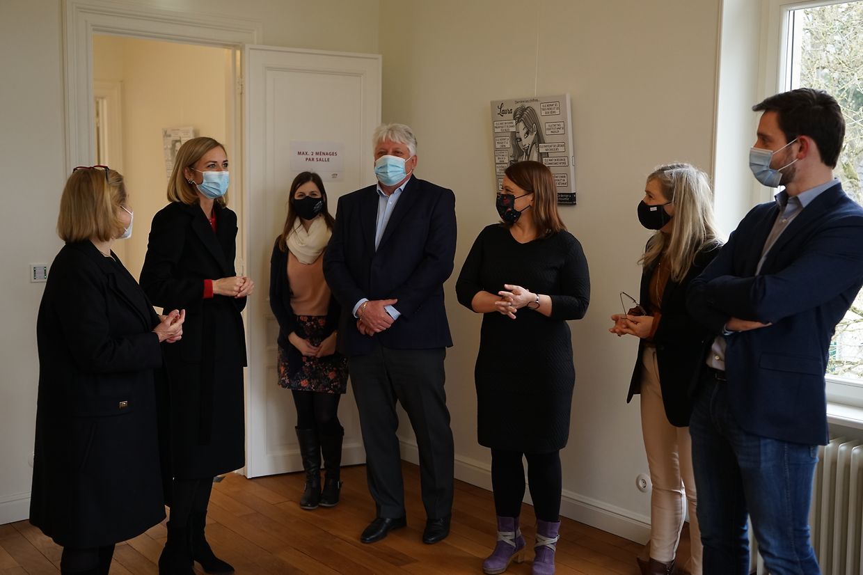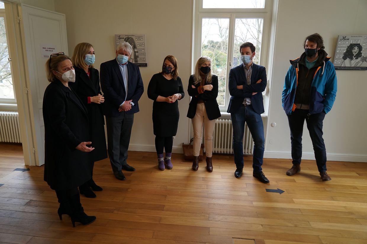 Ce vendredi 12 mars 2021 la Ministre de l’Égalité entre les femmes et les hommes Taina Bofferding s’est rendue à la Villa Collart pour visiter l'exposition en présence du Collège des bourgmestre et Échevins de la commune de Steinfort.