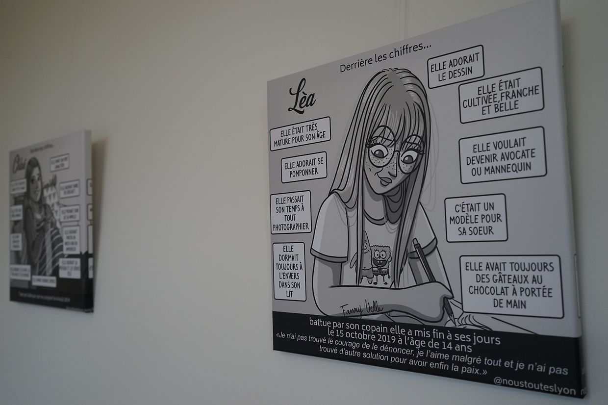 Cette exposition, qui est une première au Luxembourg, montre des portraits en noir et blanc réalisés par l’autrice et l’illustratrice lyonnaise Fanny Vella en collaboration avec le collectif Nous Toutes Lyon. Ayant elle-même vécu cette violence, elle se consacre à ce sujet afin de donner un bel hommage aux femmes qui sont mortes suite de violences conjugales et pour sensibiliser.