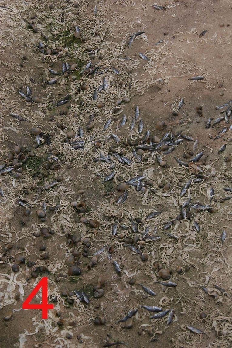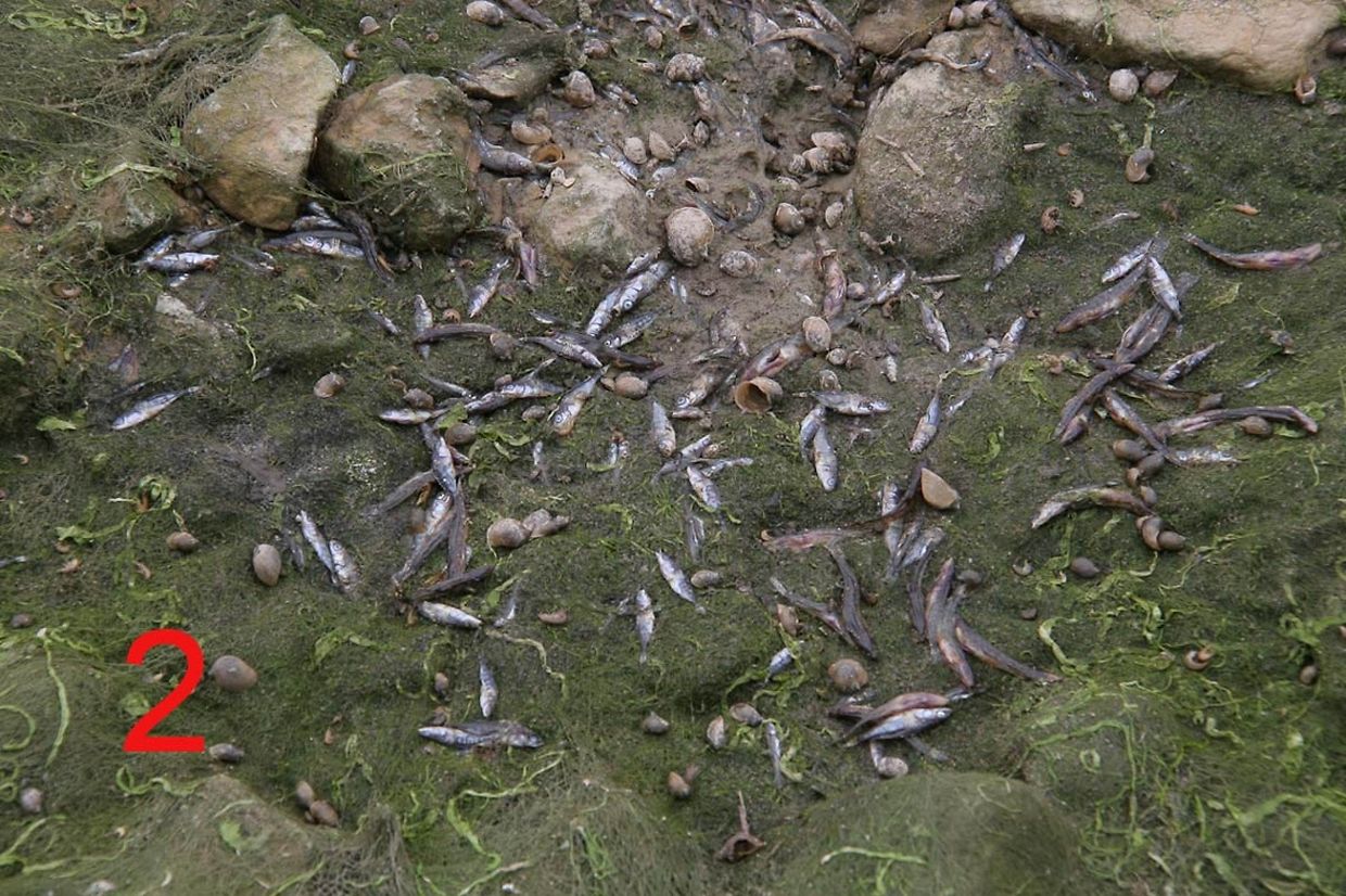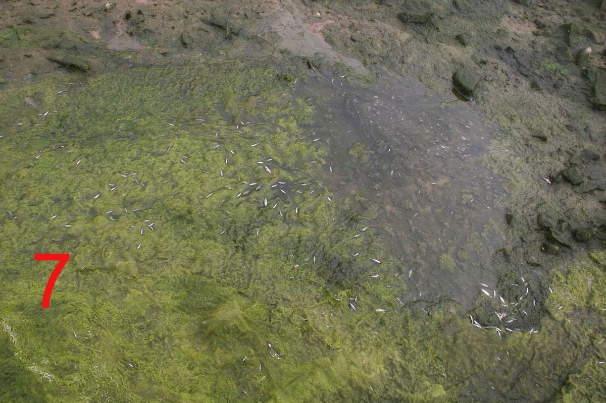 Was mich allerdings erzürnt, ist die Tatsache, dass man die Anzahl der gestorbenen Fische maßlos untertreibt. Anhand der beiliegenden sieben Bildern ( ich kann gerne noch mehr liefern ) kann ich jedoch einwandfrei beweisen, dass die Zahl der toten Fische um mindestens 100 Mal höher liegen dürfte. Von den noch viel zahlreicheren toten Schnecken ganz abgesehen.