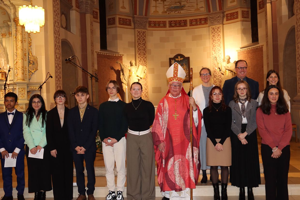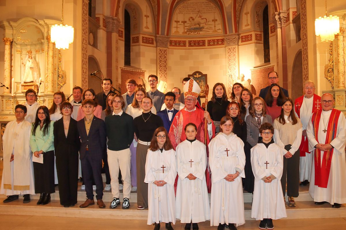 23 Jugendlech an Erwuessener, 13 aus de Paren STEESEL-WALFER, 8 aus der Par MAMERDALL an 2 aus der Par MONNERECH--SCHЁFFLENG-STEEBRECKEN, hunn de Samschdeg, den 21. Januar 2023 an der Firmungsmass d’Firmsakrament empfaangen. D’ Mass stoung ënnert dem Thema: „Eingeladen zum Fest des Glaubens“. Eng Equipe ënnert der Verantwortung vum Pastoralreferent Karsten Steil-Wilke an dem Kaploun Jacques Bruns hunn déi jonk Erwuessen während annerhalleft Joer op d‘ Firmung virbereet.