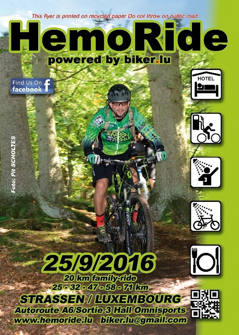 Am verganenen Sonntag, 25.9 lud der Strassener Mountainbikeverein biker.lu, zu seinem nunmehr 5ten, jährlich organisierten Hemoride, ein. Nicht weniger als 847 Mountainbiker/innen liessen sich zu den 6 gezeichneten, 20 bis 72 km langen Strecken, sowie dem wunderbaren Wetter hinreissen. Dank der Unterstützung der Strassener Gemeinde, der Strassenbauverwaltung, sowie etwa 30 freiwilligen Helfern, lief der Hemoride ohne erwähnenswerten Zwischenfall ab. Für Familien hatte biker.lu eine kleine Strecke im Angebot, welche durch erfahrene Bikeguides begleitet wurde. Insgesamt, wurden nicht weniger als 38.300 km auf den Mountainbiker/innen abgestrampelt. Biker.lu spendet jedes Jahr einen Grossteil des Gewinns von der Rundfahrt an eine karitative Einrichtung.