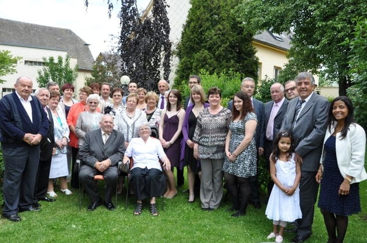 Im Kreis ihrer Familie feierten neulich Adèle und Fernand Arend-Kirsch aus Strassen im Restaurant „Bräiläffel“ in Kleinbettingen ihren 60. Hochzeitstag. Fernand Arend, geboren am 23. März 1930 in Wecker und Adéle Kirsch, die am 13. Oktober 1931 in der Hauptstadt das Licht der Welt erblickte, schlossen am 2. Juni 1952 in der Kirche in Weimerskirch den Bund fürs Leben. Aus ihrer Ehe ging Tochter Monique hervor. Im Laufe der Jahre erweiterte die Familie sich um Schwiegersohn Jean-Paul und die Enkelkinder Anne und Lynn. Das rüstige Jubelpaar lebt seit 1962 in Strassen.