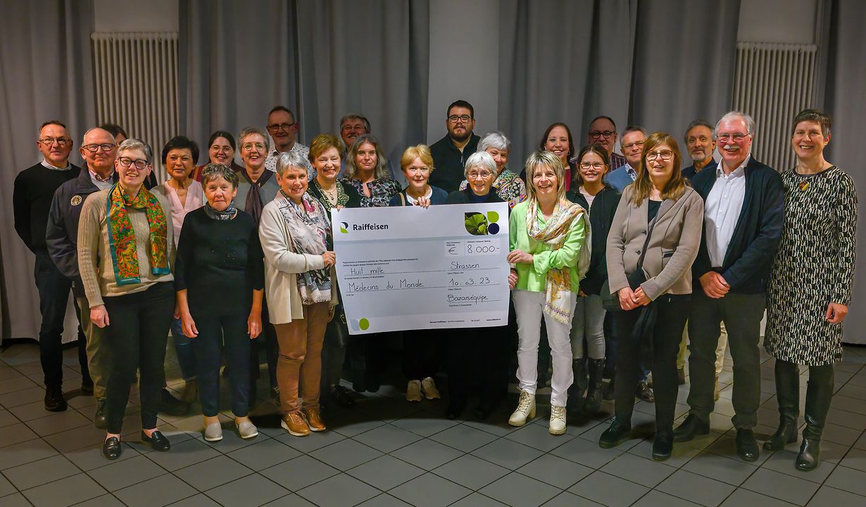 D’Bazarsekipp vu Stroossen hat och 2022 fläisseg gebastelt a konnt esou aus dem Erléis vun hire verschiddenen Aktivitéiten ee Scheck vun 8000 € un Médecins du Monde iwwerreechen.
