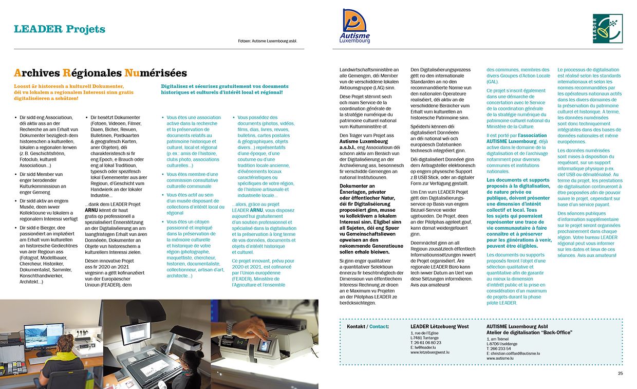 Al Fotoen, Dokumenter etc. aus de LEADER Regioune Lëtzebuerg West, Mëllerdall, Éislek an Atert-Wark (Kanton Réiden) déi e Mehrwert fir d'Regioun hunn.