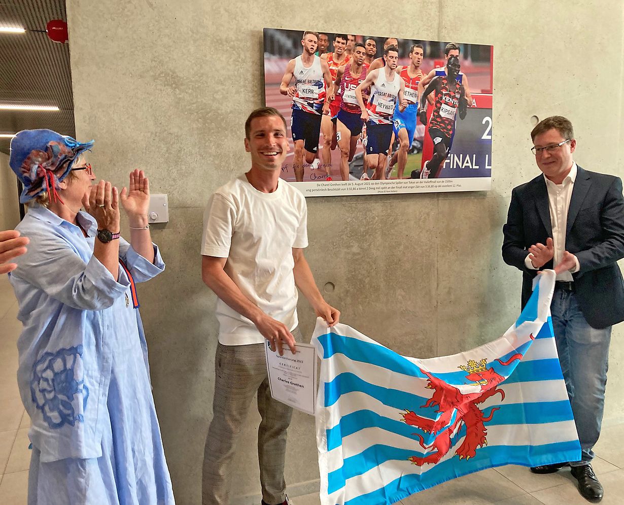 Vor kurzem hat die Fusionsgemeinde Helperknapp ihren wohl bekanntesten Sohn Charel Grethen geehrt. Im dafür geradezu prädestinierten Eingangsbereich der funkelnagelneuen Sportshalle in Bruch enthüllte der Olympia-Finalist Charel Grethen in Anwesenheit seiner Eltern Michèle und Romain Grethen-Lanter, dem Schöffenrat und zahlreichen Einwohnern eine Ehrentafel mit einem Foto im Großformat seiner eindrucksvollen Performance beim olympischen 1 500 Meterlauf in Tokio 2020 (2021). Mit einem neuen Landesrekord über 3:32,86 min hatte sich der Athlet sensationell für das große Finale qualifiziert. Er feierte damit seinen bis dato größten sportlichen Erfolg und das kleine Luxemburg zeigte sich stolz auf seinen olympischen Finalteilnehmer in Erinnerung der vor 69 Jahren durch Josy Barthel gewonnenen Goldmedaille ebenfalls in der Mittelstreckendistanz.