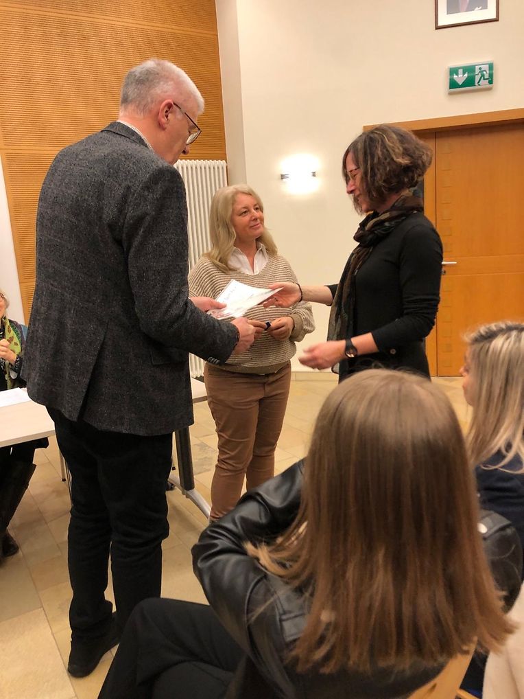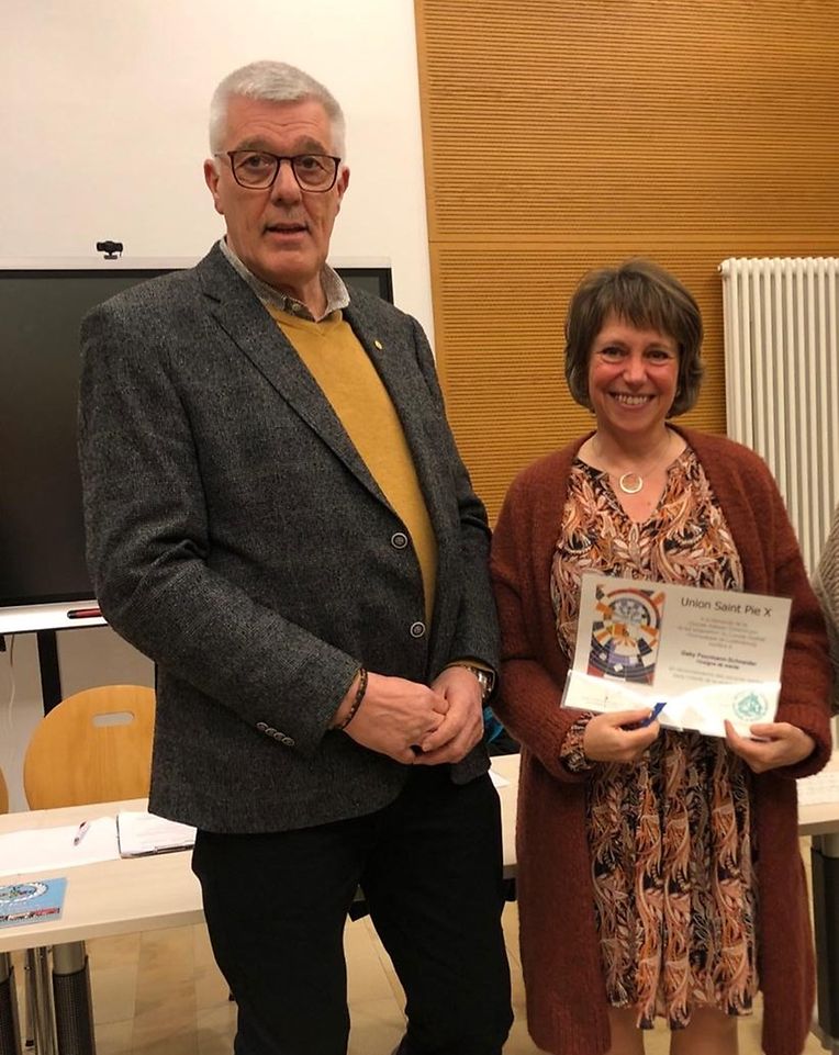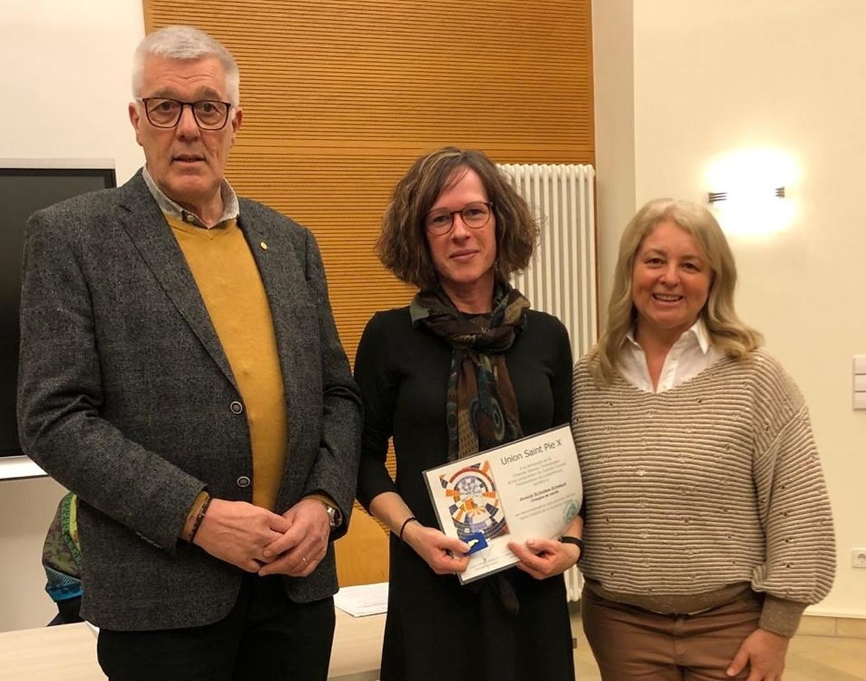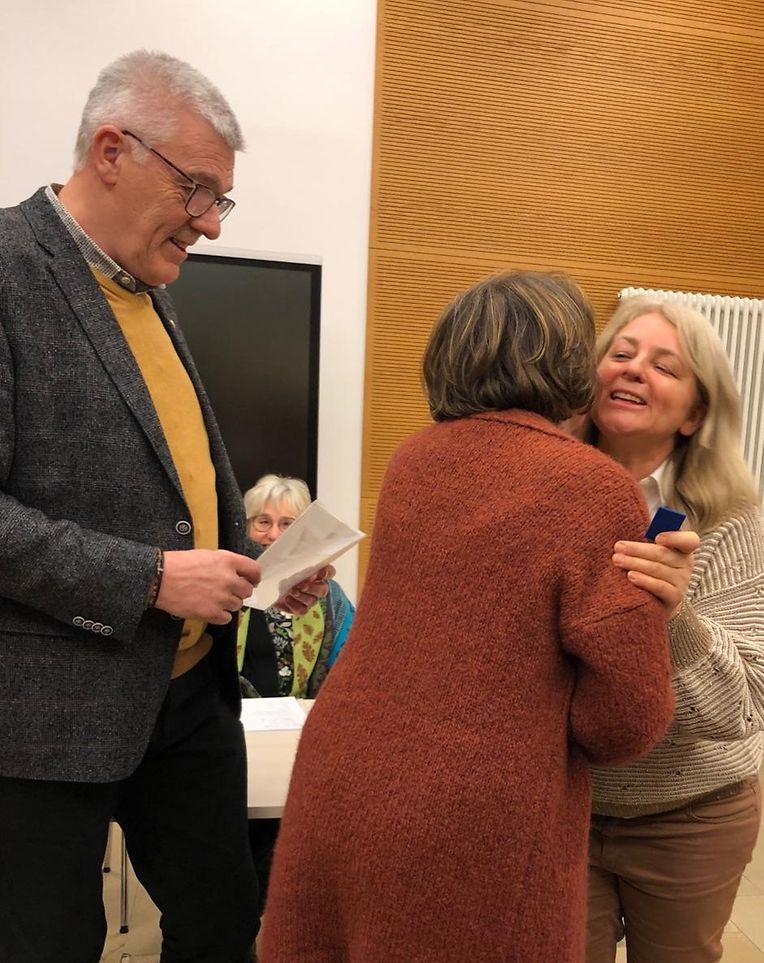 Der Präsident des Piusverbandes, Marc Boever und die Präsidentin des Adesso, Ingrid Scholzen würdigten das Engagement und die Treue der drei Sängerinnen Gaby Fourmann, Annick Scholtes und Patricia Ribeiro und überreichten ihnen anschliessend ihre Medaille. Danach wurden die drei Sängerinnen gefeiert mit dem Chor und ihrem Dirigenten Ferdi Kreins.